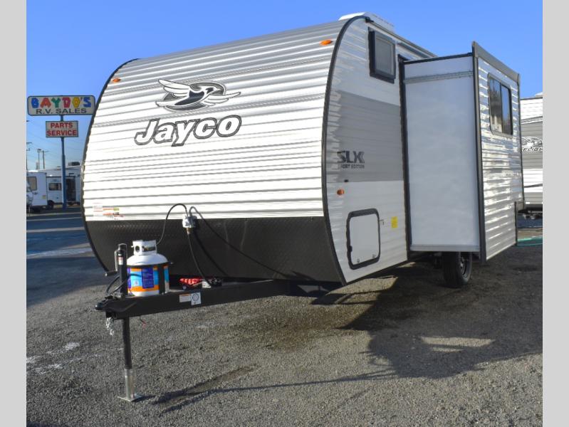 The Jayco Jay Flight SLX travel trailer is quite easy to own because it is lightweight for an easier towing experience. Built on a fully integrated A-frame with galvanized-steel, impact-resistant wheel wells, the Jay Flight SLX has quality at its very foundation. That quality continues on to the electric self-adjusting brakes, easy-lube hubs, and a Magnum Truss roof system. Inside, you'll enjoy vinyl flooring throughout, solid hardwood cabinet doors, residential-style kitchen countertops and many more comforts!
