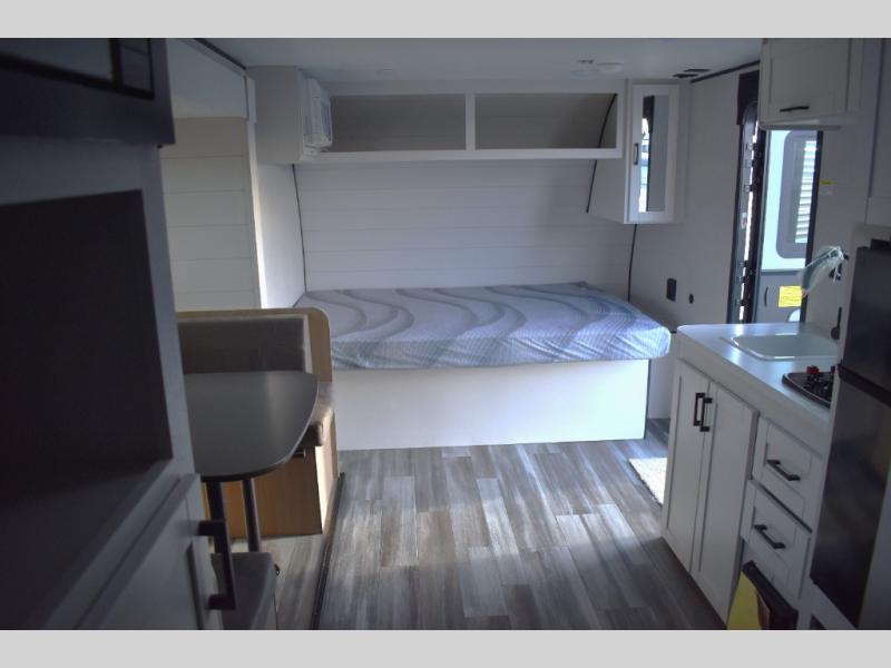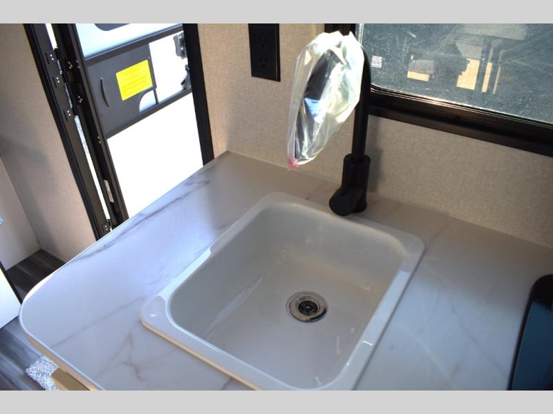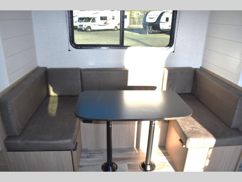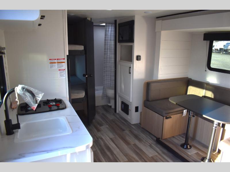 Your crew of eight will love camping in this travel trailer! There are double-size bunk beds in the rear corner and a private bath in the other rear corner for easy nighttime use. You will have the front queen bed to yourselves, along with an overhead shelf and a nightstand for your things. And the U-shaped dinette provides a place to dine, play games, and even let more guests sleep over. The Customer Value Package on this Sport Edition model includes a 19K BTU furnace, stabilizer jacks, a power awning, an entry door with a window and shade prep, and many more stand-out features!