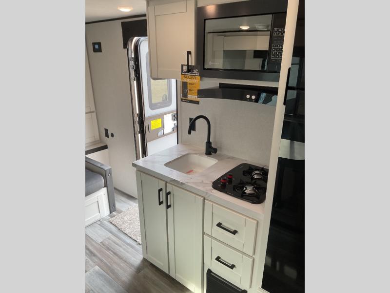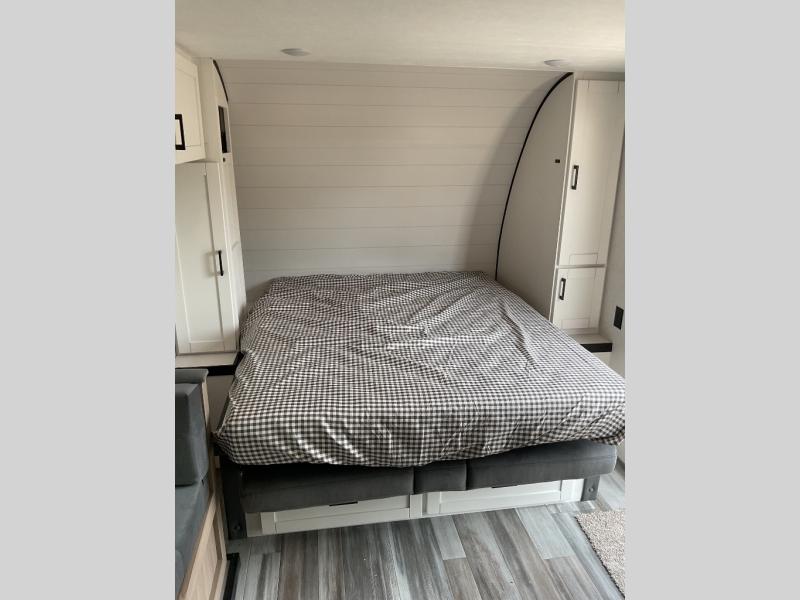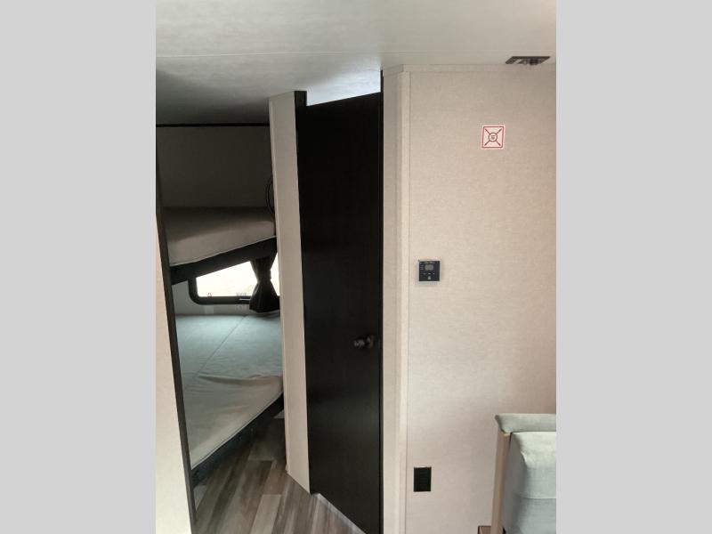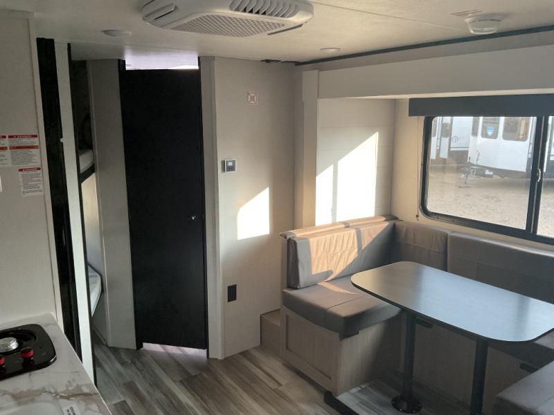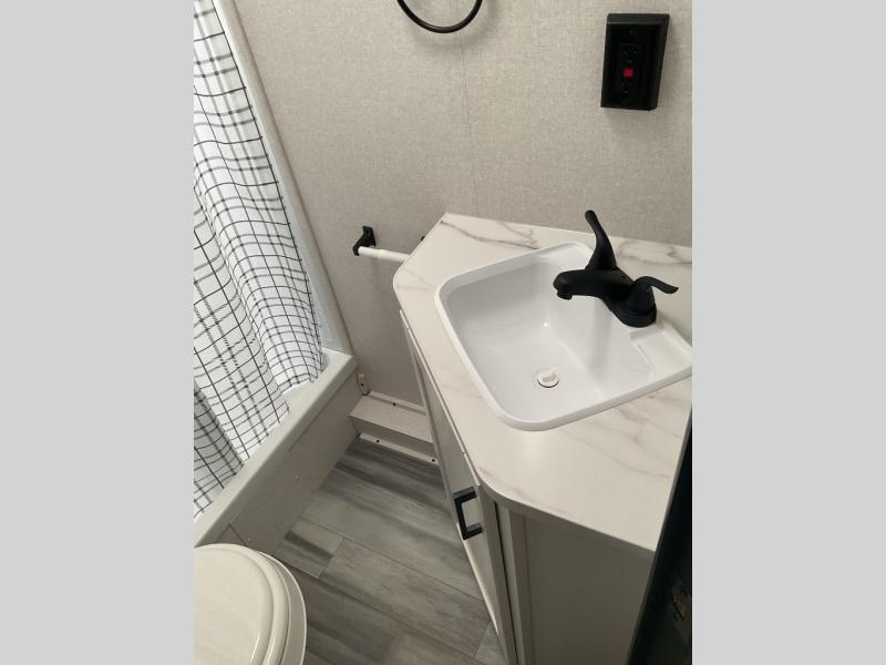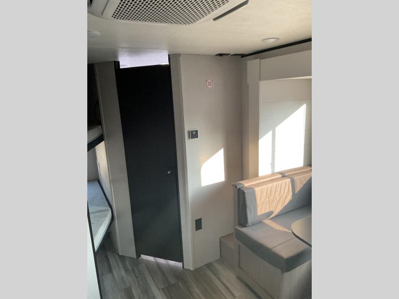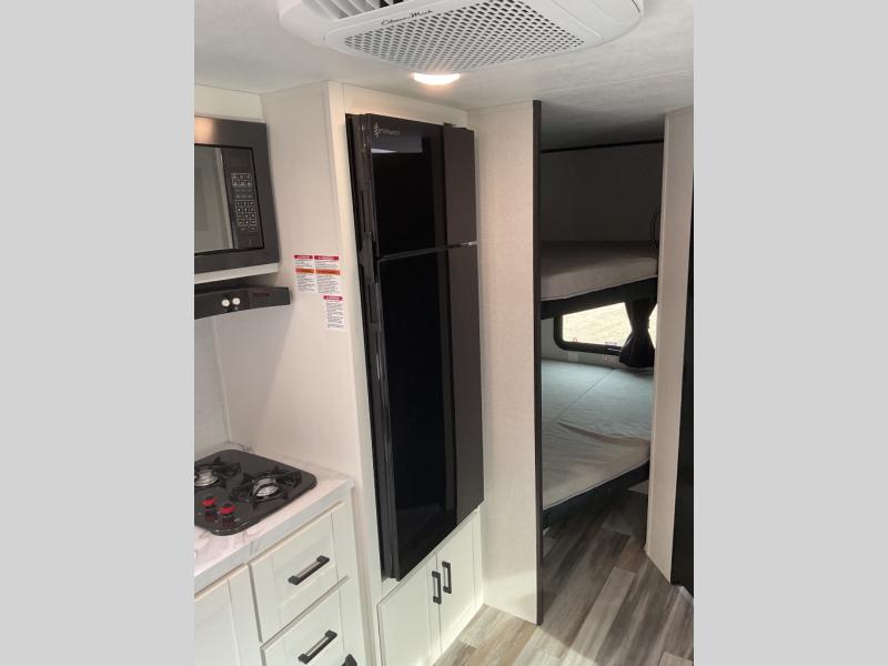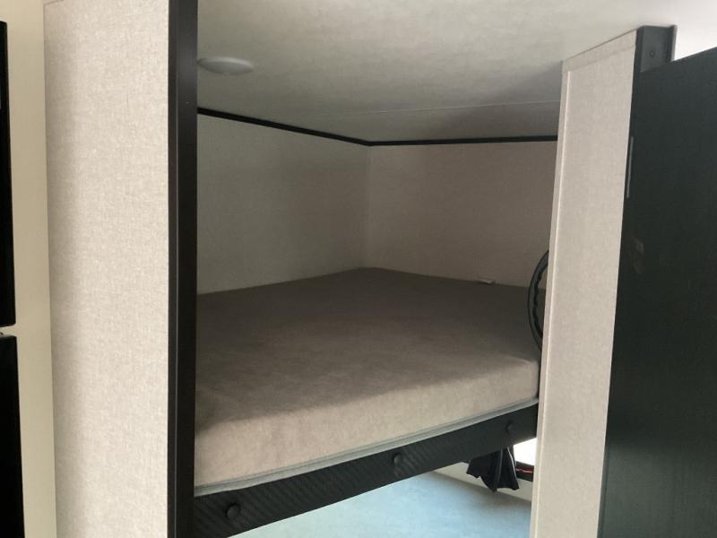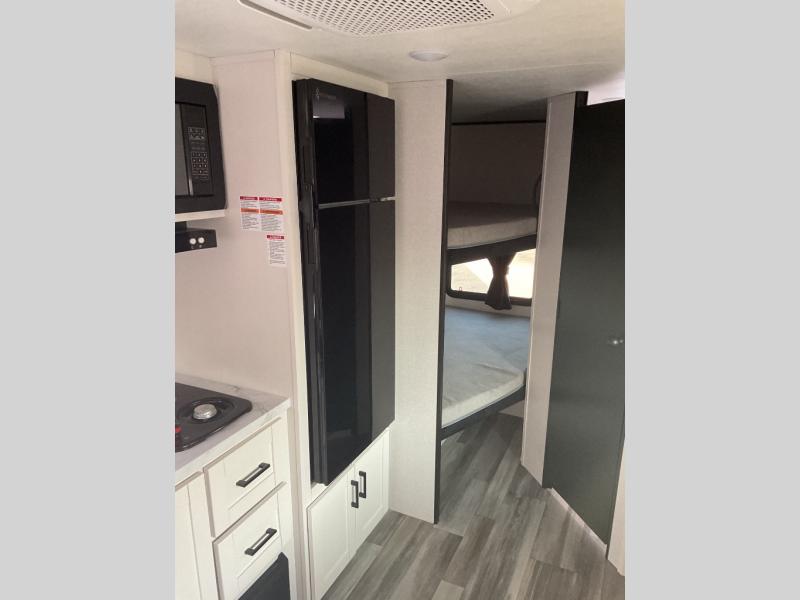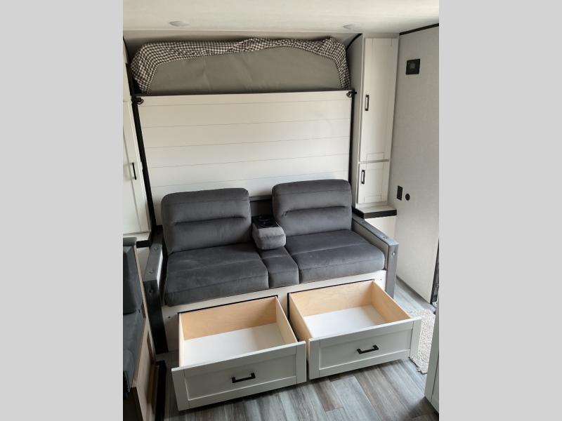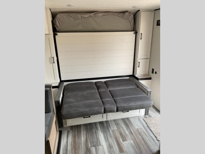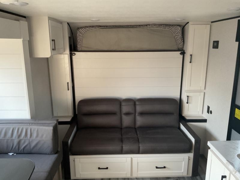 Any time spent in this travel trailer will be time well spent! You can easily sleep eight people each night thanks to the double-size bunks, front Murphy bed, and U-shaped dinette within the slide out. There is a full bath next to the bunks for easy nighttime use, and the linen closet will be perfect for clean towels. A cooktop, microwave oven, and 8 cu. ft. 12V refrigerator will let you cook and store food, and there is an overhead cabinet for spices or snacks! The optional STX Edition can be added on this model which includes 16 in. off-road tires, triple entry steps, a power tongue jack, and more!