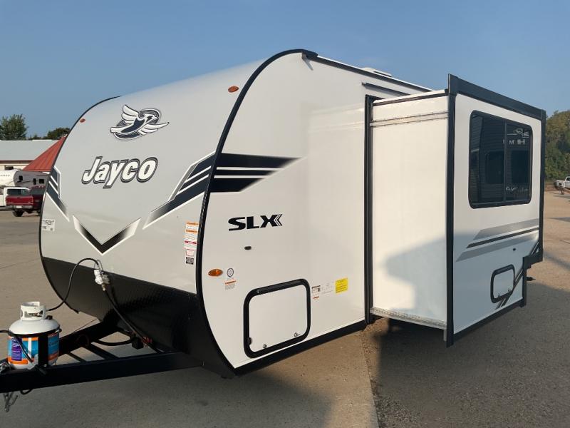 The Jayco Jay Flight SLX travel trailer is quite easy to own because it is lightweight for an easier towing experience. Built on a fully integrated A-frame with galvanized-steel, impact-resistant wheel wells, the Jay Flight SLX has quality at its very foundation. That quality continues on to the electric self-adjusting brakes, easy-lube hubs, Magnum Truss roof system, and LP quick connect. Some of what the mandatory Customer Value Package includes is backup camera prep, Keyed-Alike entry and baggage doors, marine grade exterior speakers, and an on-demand tankless water heater.