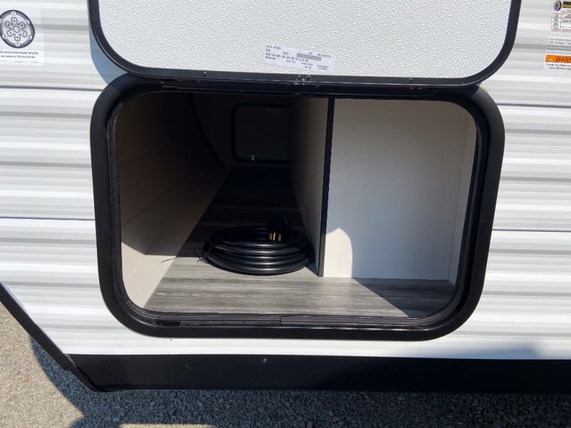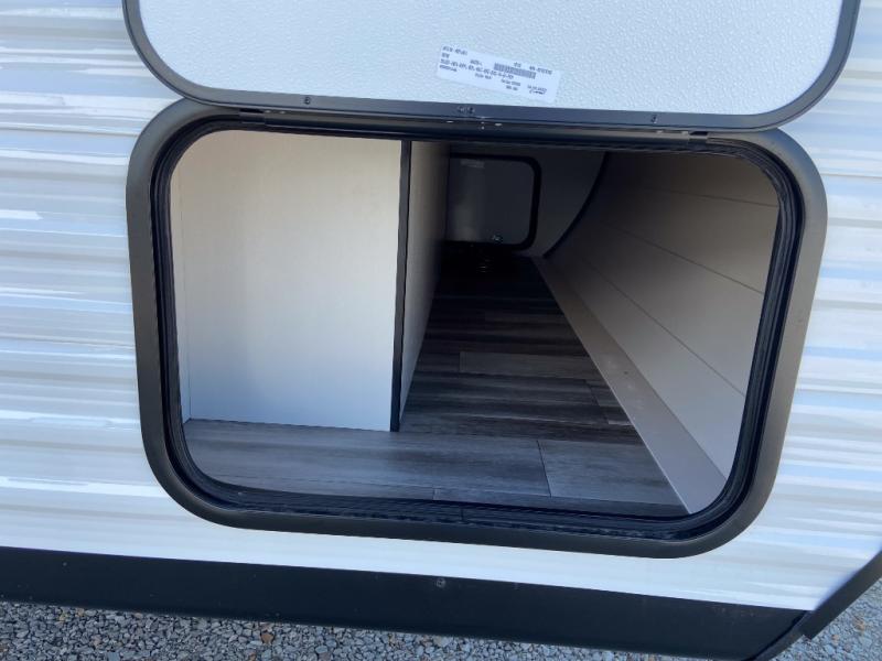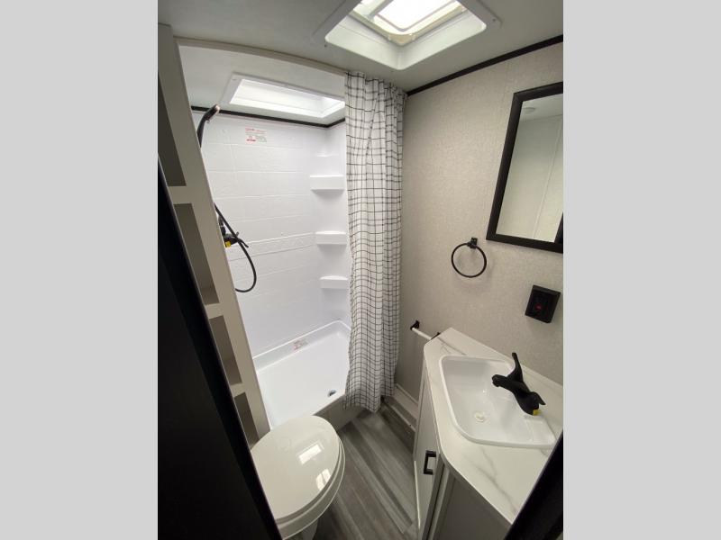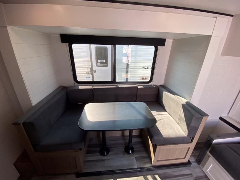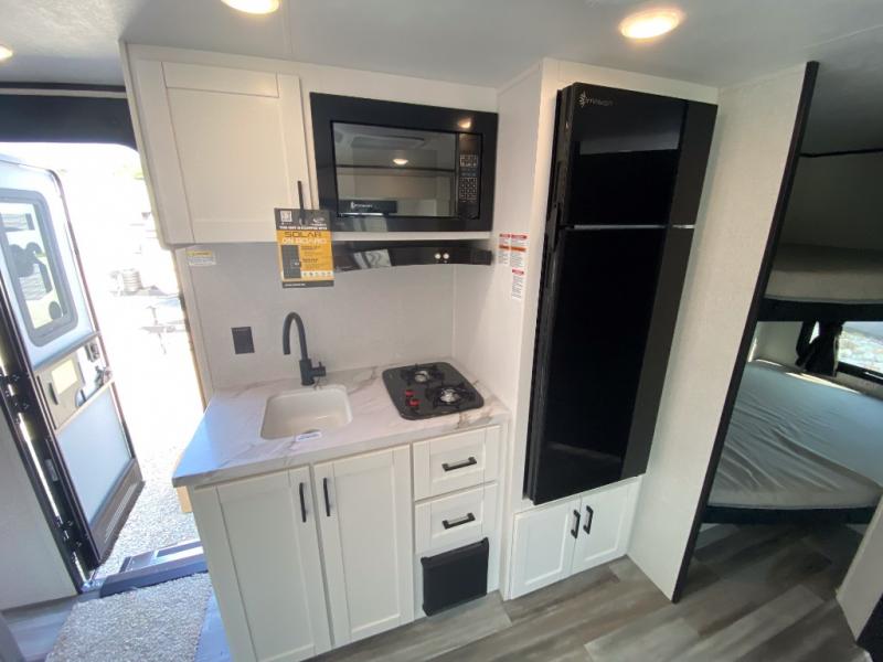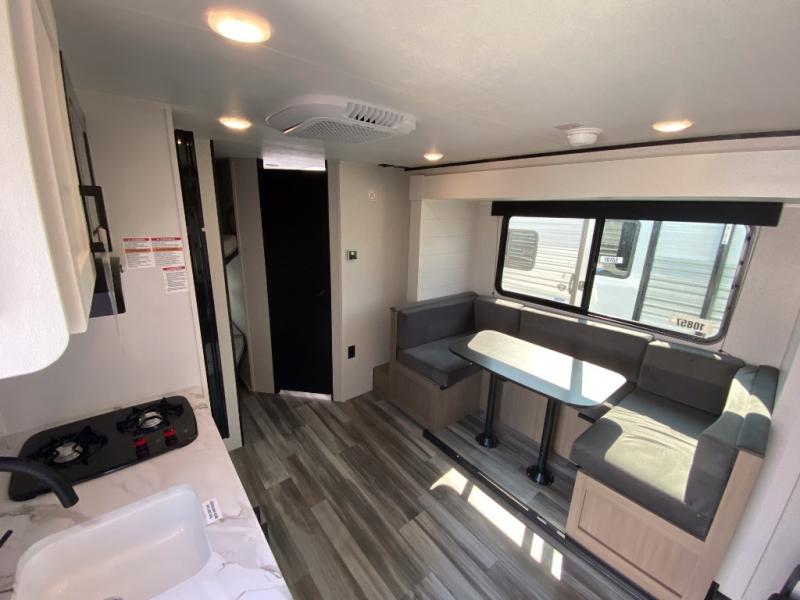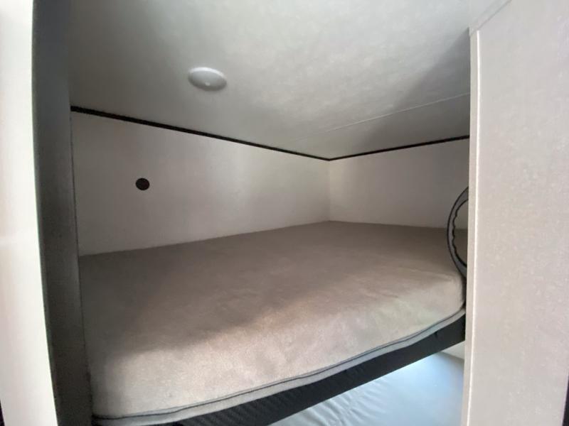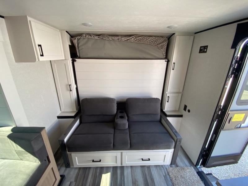 Any time spent in this travel trailer will be time well spent! You can easily sleep eight people each night thanks to the double-size bunks, front Murphy bed, and U-shaped dinette within the slide out. There is a full bath next to the bunks for easy nighttime use, and the linen closet will be perfect for clean towels. A cooktop, microwave oven, and 8 cu. ft. 12V refrigerator will let you cook and store food, and there is an overhead cabinet for spices or snacks! The optional STX Edition can be added on this model which includes 16 in. off-road tires, triple entry steps, a power tongue jack, and more!
