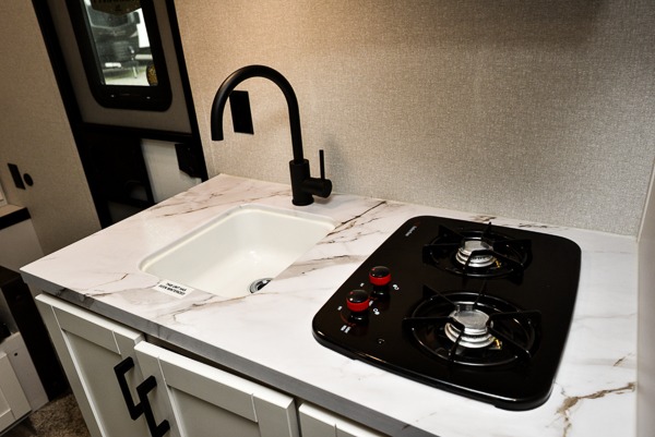 Any time spent in this travel trailer will be time well spent! You can easily sleep eight people each night thanks to the double-size bunks, front Murphy bed, and U-shaped dinette within the slide out. There is a full bath next to the bunks for easy nighttime use, and the linen closet will be perfect for clean towels. A cooktop, microwave oven, and 8 cu. ft. 12V refrigerator will let you cook and store food, and there is an overhead cabinet for spices or snacks! The optional STX Edition can be added on this model which includes 16 in. off-road tires, triple entry steps, a power tongue jack, and more!