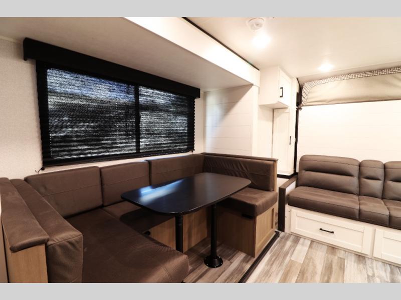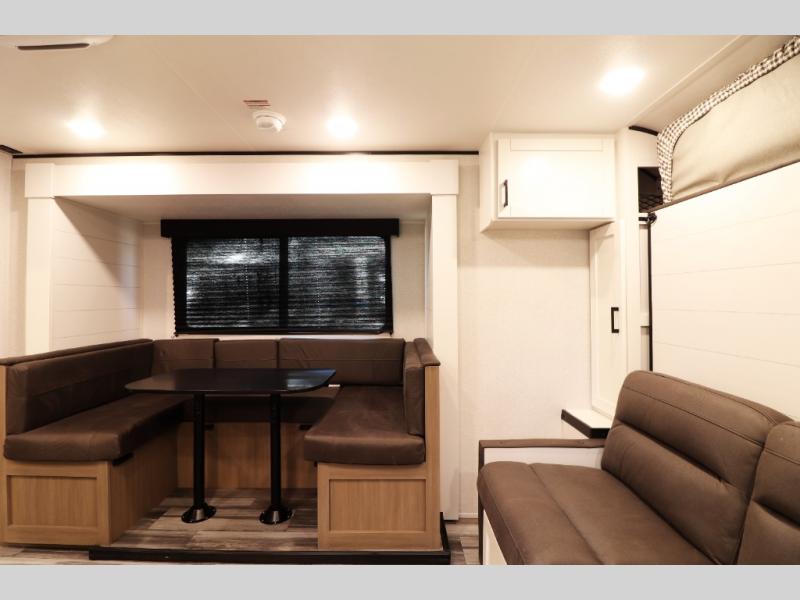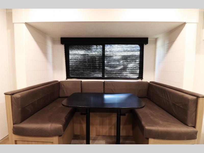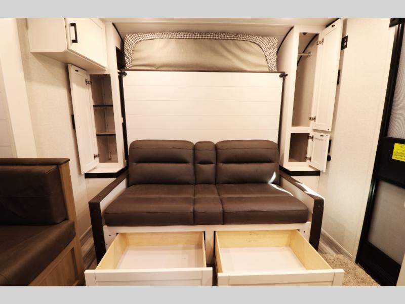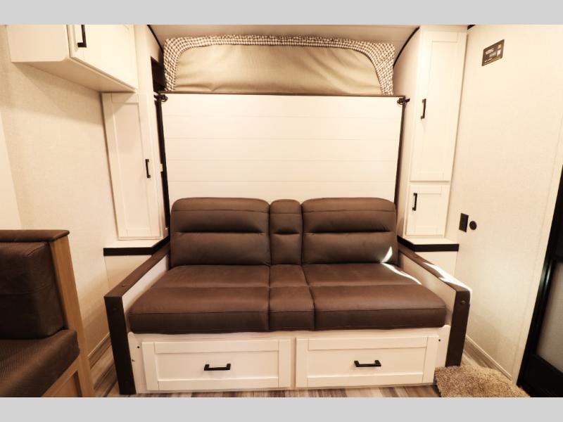 Murphy Bed + U-Shaped Dinette Slideout: Converts easily to maximize daytime space, then folds out for restful sleeping. Great for couples wanting a big bed and families needing sleeping for more.