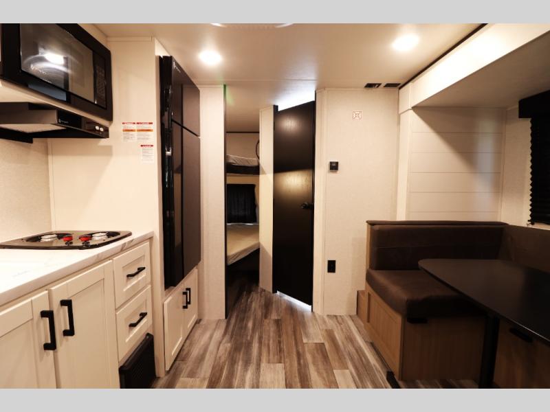 Bunk Beds in Rear: Double bunks (with high weight capacities) make this floorplan ideal for kids or guests.