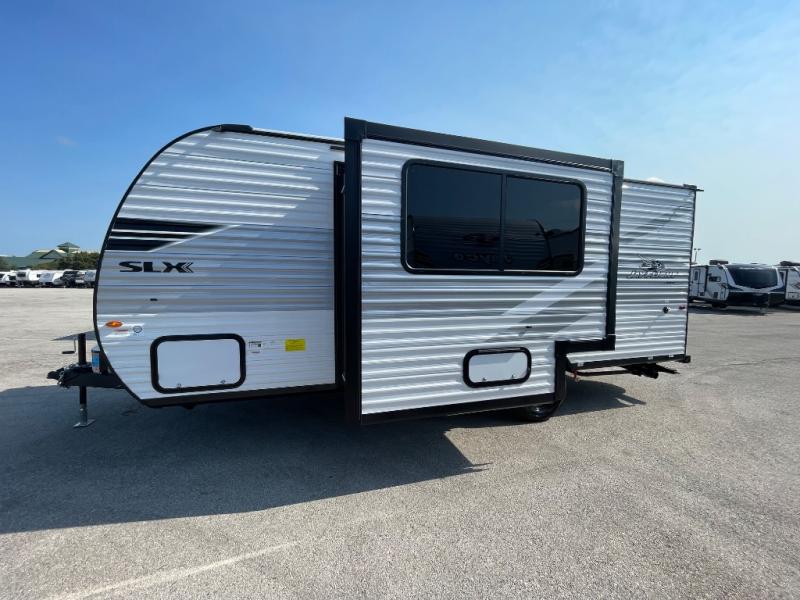 The Jayco Jay Flight SLX travel trailer is quite easy to own because it is lightweight for an easier towing experience. Built on a fully integrated A-frame with galvanized-steel, impact-resistant wheel wells, the Jay Flight SLX has quality at its very foundation. That quality continues on to the electric self-adjusting brakes, easy-lube hubs, Magnum Truss roof system, and LP quick connect. Some of what the mandatory Customer Value Package includes is backup camera prep, Keyed-Alike entry and baggage doors, and an on-demand tankless water heater.