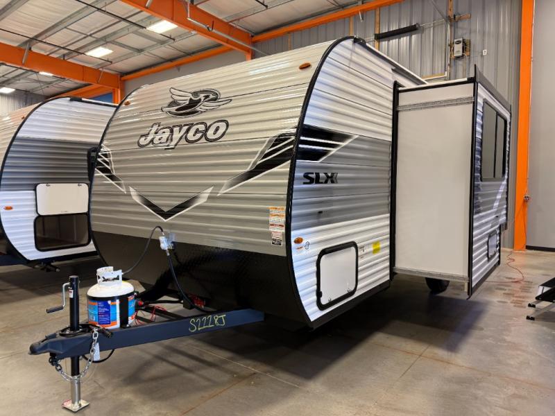 The Jayco Jay Flight SLX travel trailer is quite easy to own because it is lightweight for an easier towing experience. Built on a fully integrated A-frame with galvanized-steel, impact-resistant wheel wells, the Jay Flight SLX has quality at its very foundation. That quality continues on to the electric self-adjusting brakes, easy-lube hubs, Magnum Truss roof system, and LP quick connect. Some of what the mandatory Customer Value Package includes is backup camera prep, Keyed-Alike entry and baggage doors, and an on-demand tankless water heater.