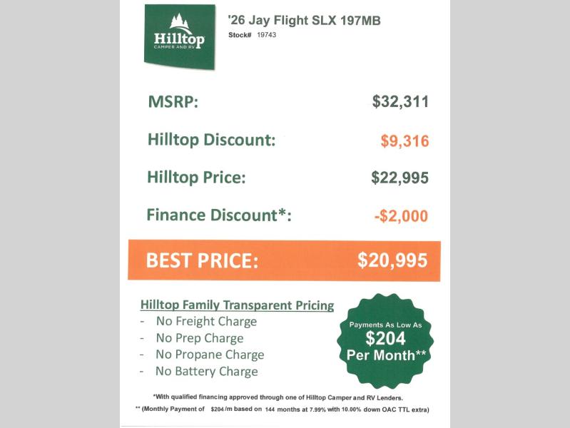 New 2026 Jayco Jay Flight SLX 197MB Travel Trailer
