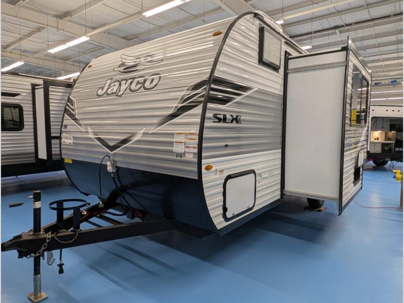 The Jayco Jay Flight SLX travel trailer is quite easy to own because it is lightweight for an easier towing experience. Built on a fully integrated A-frame with galvanized-steel, impact-resistant wheel wells, the Jay Flight SLX has quality at its very foundation. That quality continues on to the electric self-adjusting brakes, easy-lube hubs, Magnum Truss roof system, and LP quick connect. Some of what the mandatory Customer Value Package includes is backup camera prep, Keyed-Alike entry and baggage doors, and an on-demand tankless water heater.