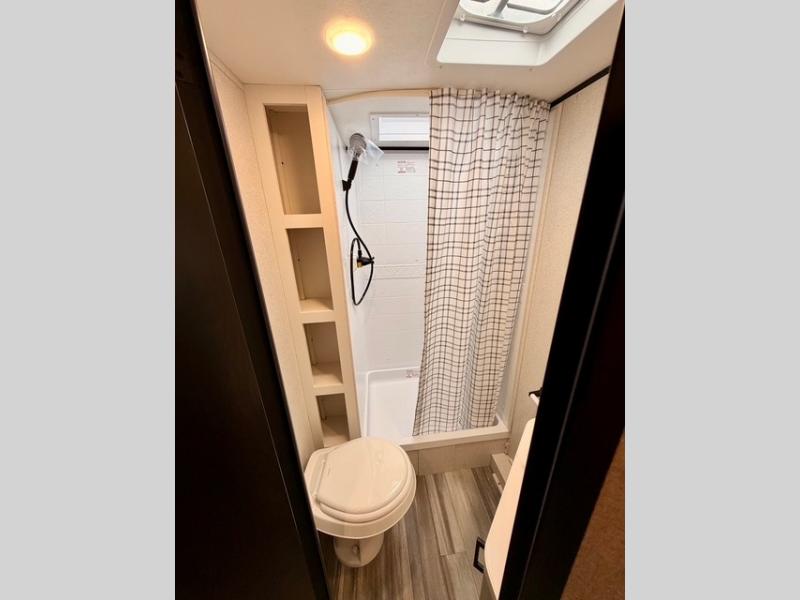 Any time spent in this travel trailer will be time well spent! You can easily sleep eight people each night thanks to the double-size bunks, front Murphy bed, and U-shaped dinette within the slide out. There is a full bath next to the bunks for easy nighttime use, and the linen closet will be perfect for clean towels. A cooktop, microwave oven, and 8 cu. ft. 12V refrigerator will let you cook and store food, and there is an overhead cabinet for spices or snacks!