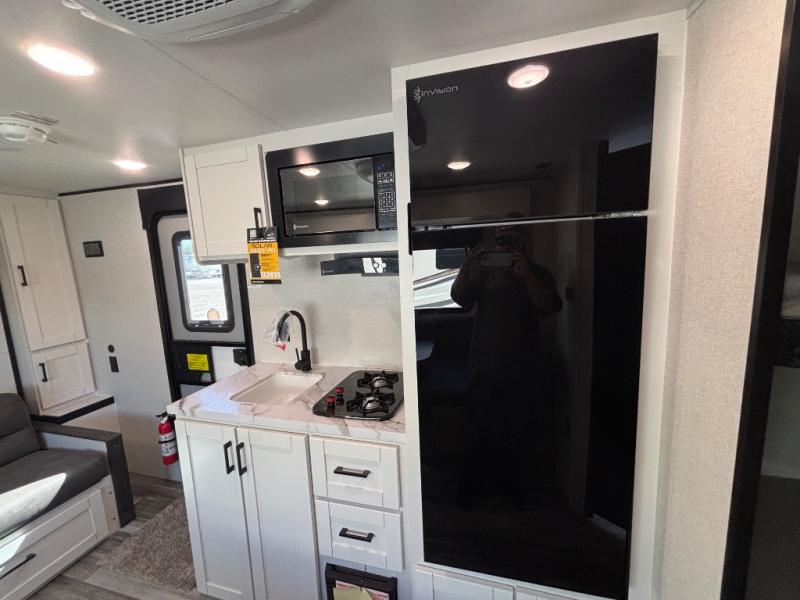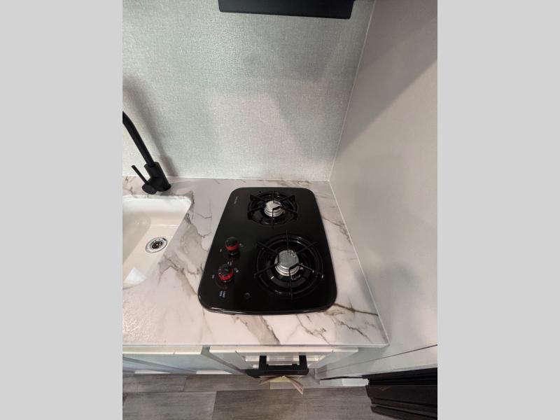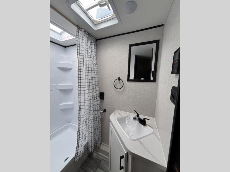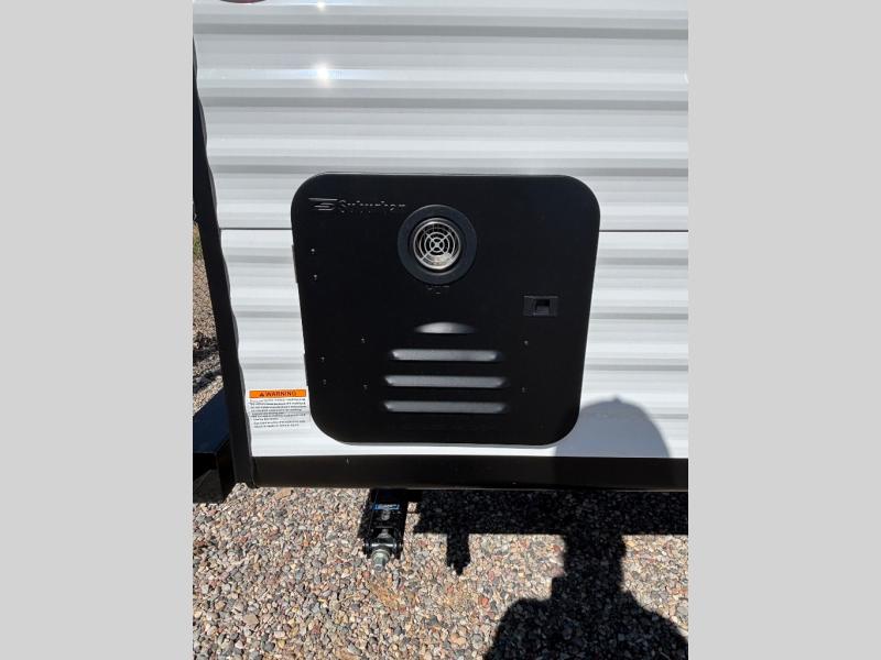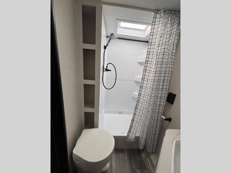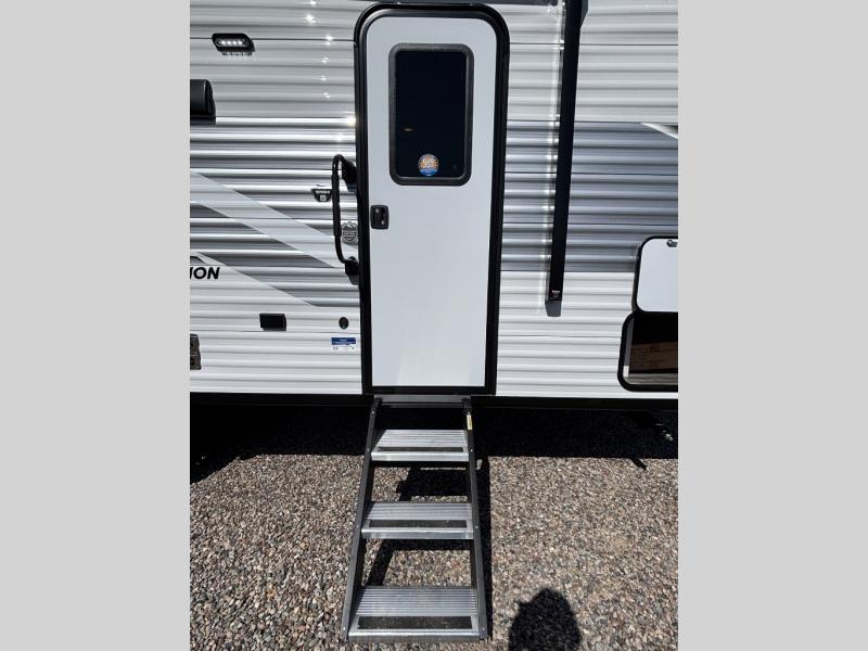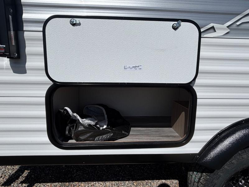 Any time spent in this travel trailer will be time well spent! You can easily sleep eight people each night thanks to the double-size bunks, front Murphy bed, and U-shaped dinette within the slide out. There is a full bath next to the bunks for easy nighttime use, and the linen closet will be perfect for clean towels. A cooktop, microwave oven, and 8 cu. ft. 12V refrigerator will let you cook and store food, and there is an overhead cabinet for spices or snacks!