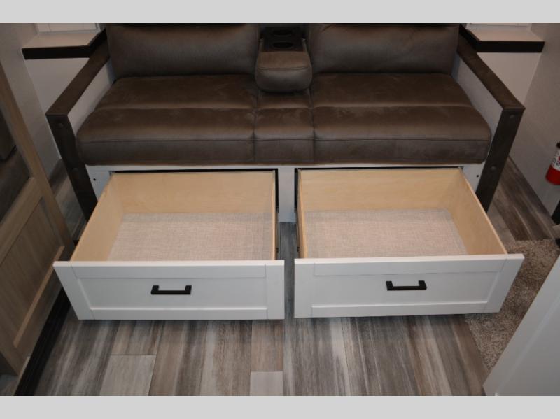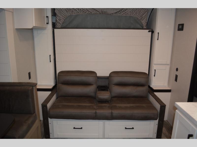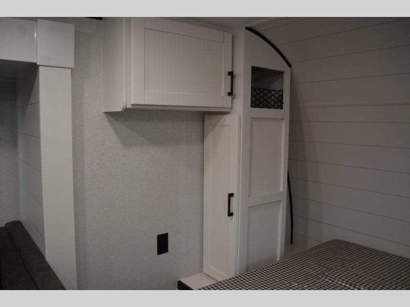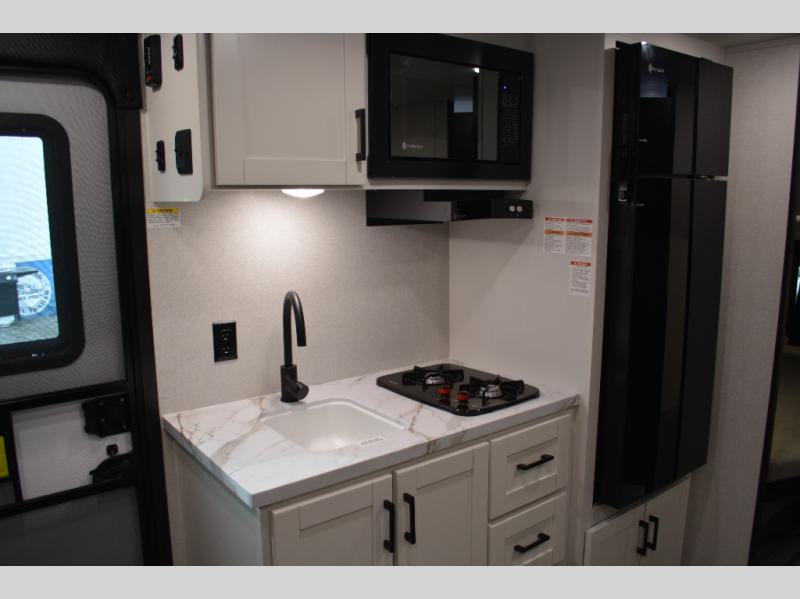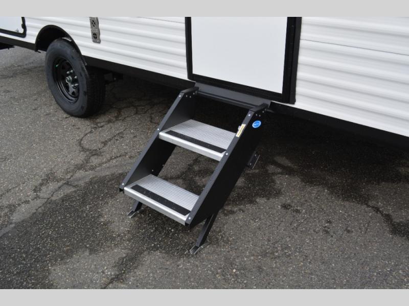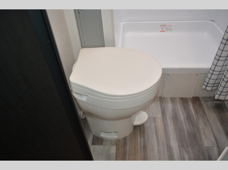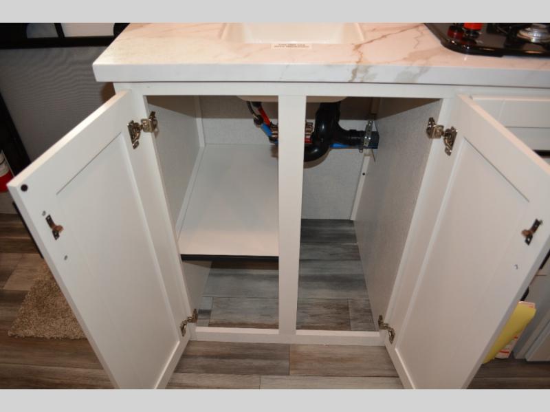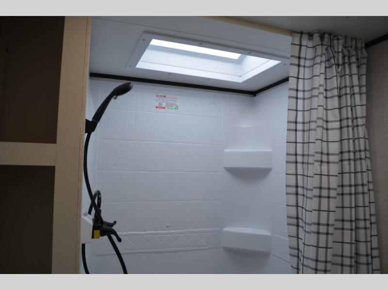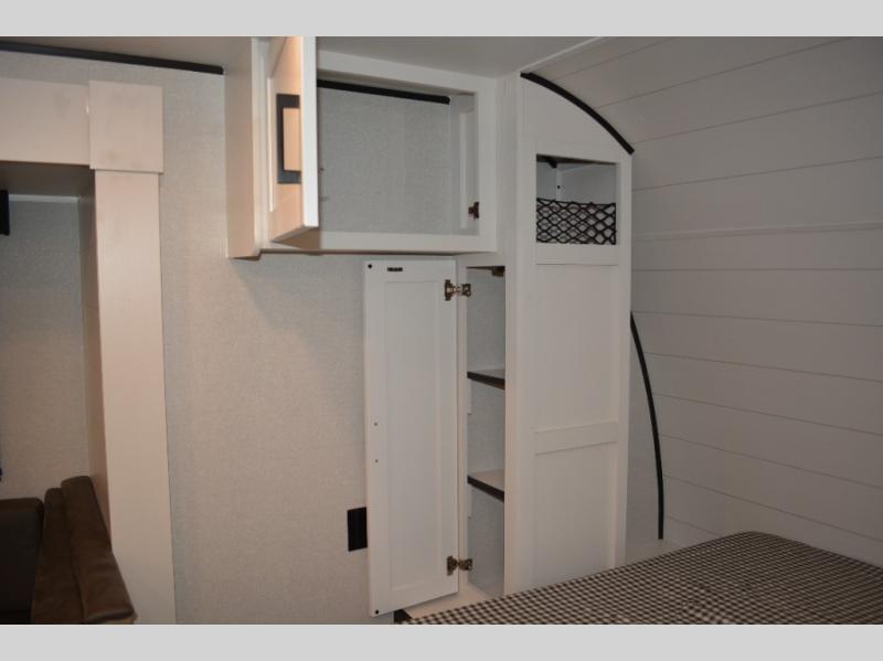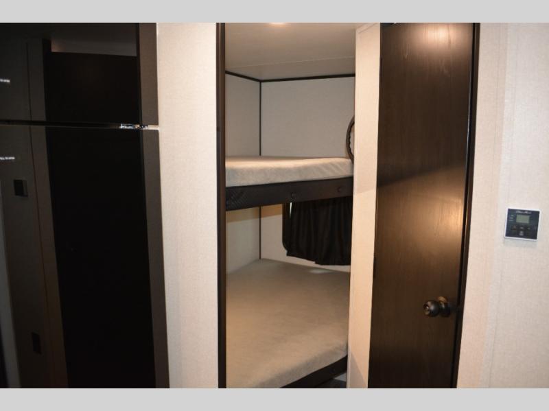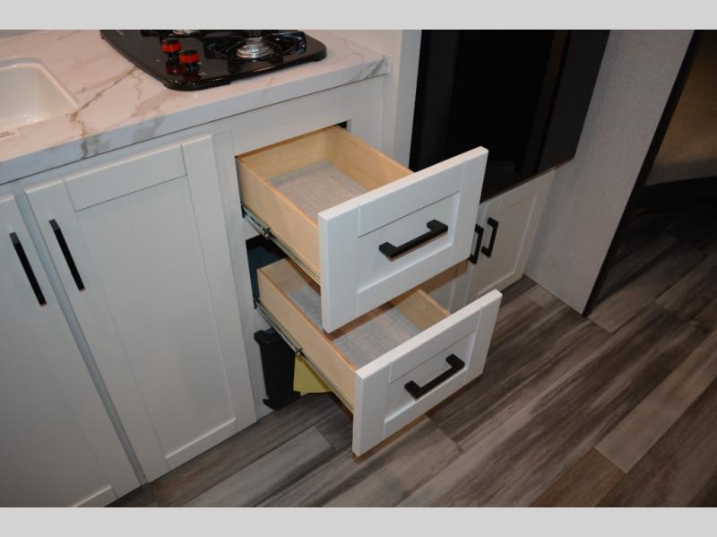 Any time spent in this travel trailer will be time well spent! You can easily sleep eight people each night thanks to the double-size bunks, front Murphy bed, and U-shaped dinette within the slide out. There is a full bath next to the bunks for easy nighttime use, and the linen closet will be perfect for clean towels. A cooktop, microwave oven, and 8 cu. ft. 12V refrigerator will let you cook and store food, and there is an overhead cabinet for spices or snacks!
