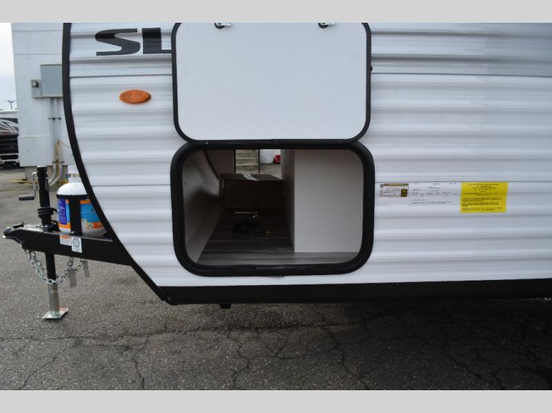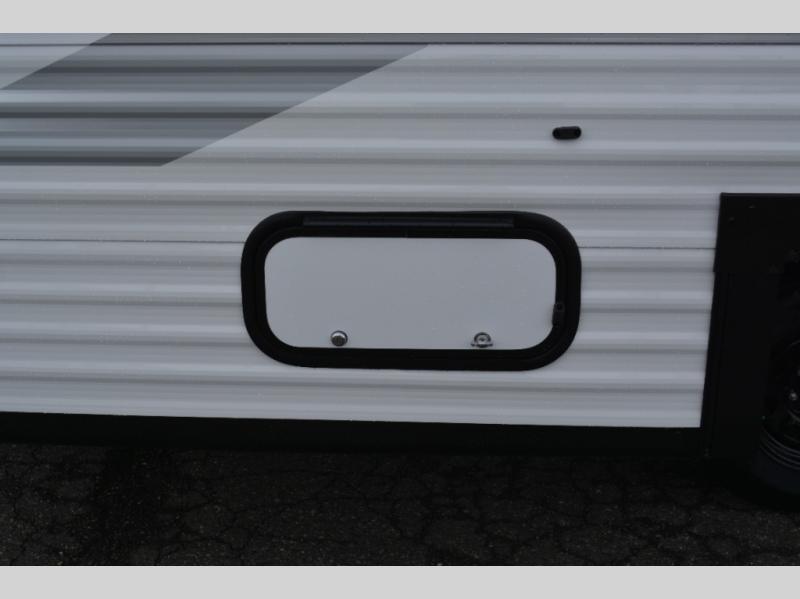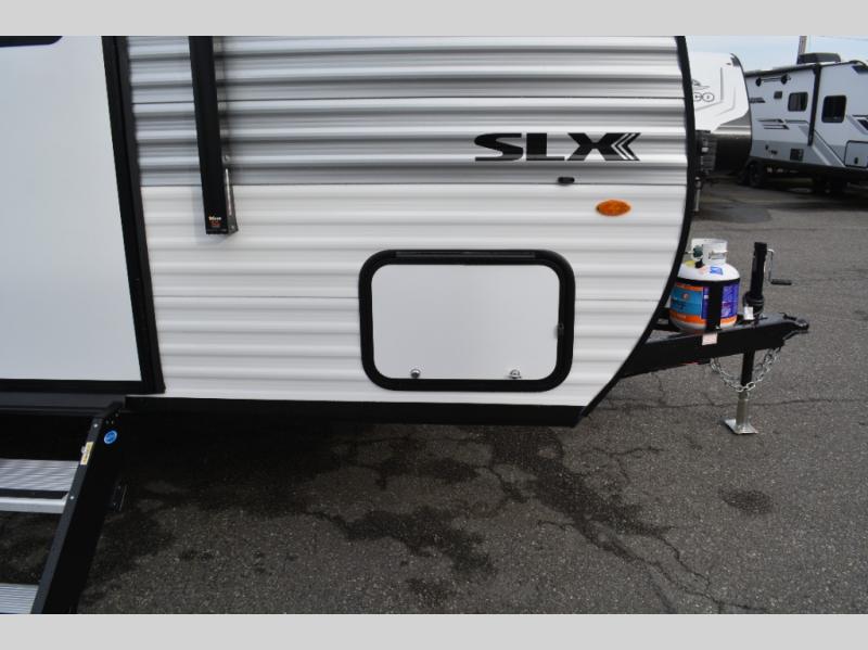 The Jayco Jay Flight SLX travel trailer is quite easy to own because it is lightweight for an easier towing experience. Built on a fully integrated A-frame with galvanized-steel, impact-resistant wheel wells, the Jay Flight SLX has quality at its very foundation. That quality continues on to the electric self-adjusting brakes, easy-lube hubs, Magnum Truss roof system, and LP quick connect. Some of what the mandatory Customer Value Package includes is backup camera prep, Keyed-Alike entry and baggage doors, and an on-demand tankless water heater.
