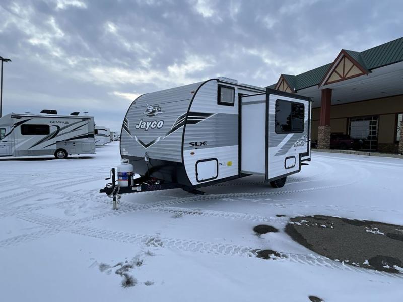 The Jayco Jay Flight SLX travel trailer is quite easy to own because it is lightweight for an easier towing experience. Built on a fully integrated A-frame with galvanized-steel, impact-resistant wheel wells, the Jay Flight SLX has quality at its very foundation. That quality continues on to the electric self-adjusting brakes, easy-lube hubs, Magnum Truss roof system, and LP quick connect. Some of what the mandatory Customer Value Package includes is backup camera prep, Keyed-Alike entry and baggage doors, and an on-demand tankless water heater.