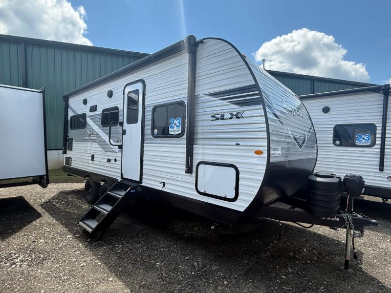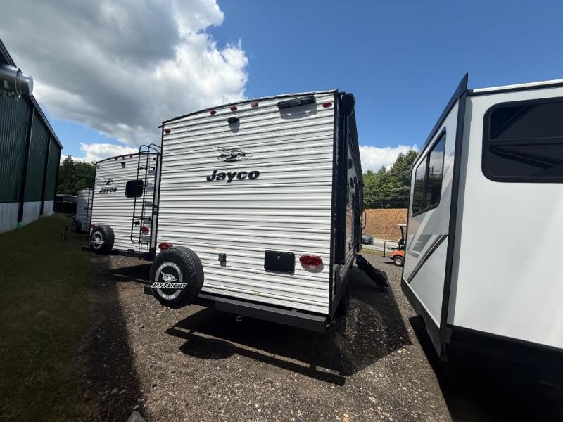 The Jayco Jay Flight SLX travel trailer is quite easy to own because it is lightweight for an easier towing experience. Built on a fully integrated A-frame with galvanized-steel, impact-resistant wheel wells, the Jay Flight SLX has quality at its very foundation. That quality continues on to the electric self-adjusting brakes, easy-lube hubs, Magnum Truss roof system, and LP quick connect. Some of what the mandatory Customer Value Package includes is backup camera prep, Keyed-Alike entry and baggage doors, marine grade exterior speakers, and an on-demand tankless water heater.