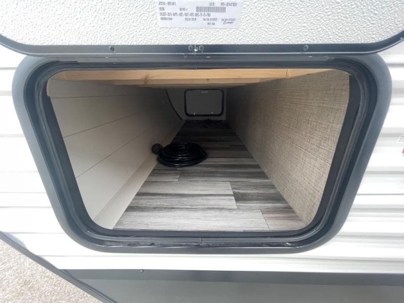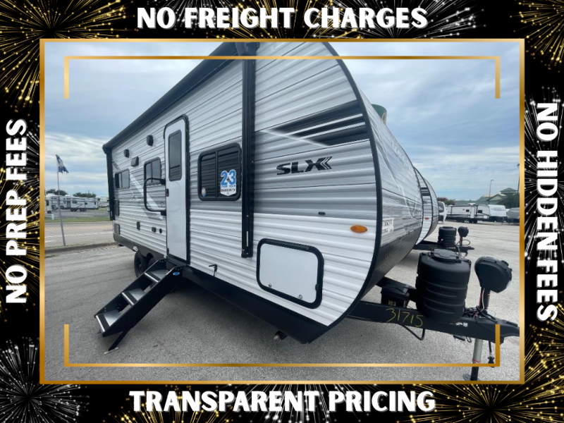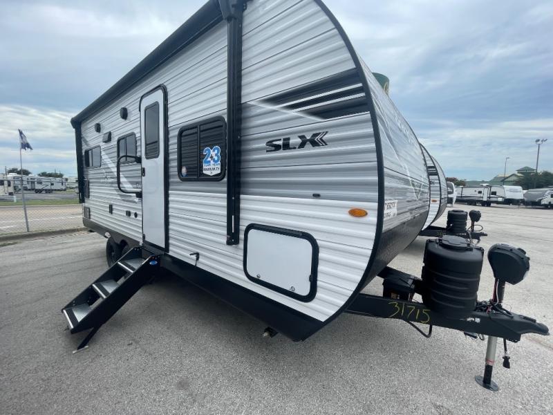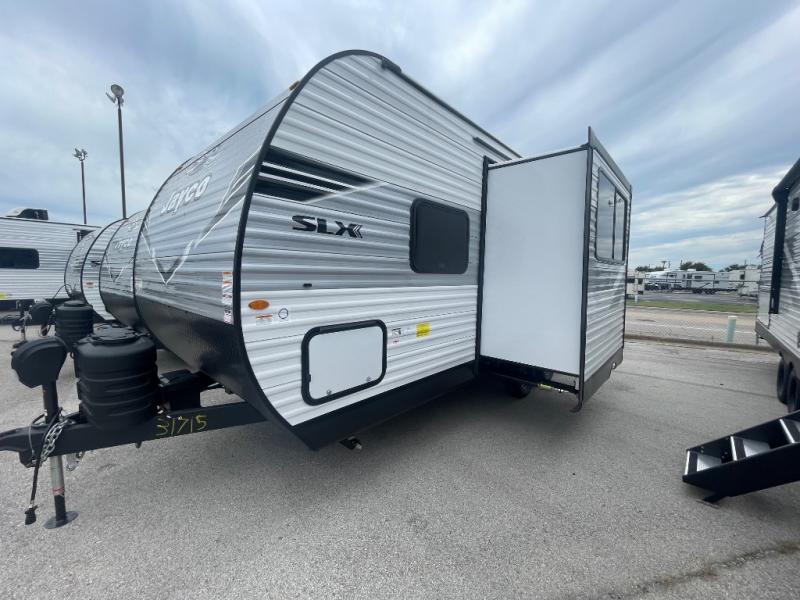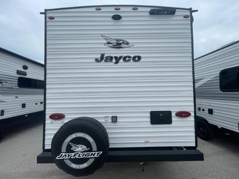 The Jayco Jay Flight SLX travel trailer is quite easy to own because it is lightweight for an easier towing experience. Built on a fully integrated A-frame with galvanized-steel, impact-resistant wheel wells, the Jay Flight SLX has quality at its very foundation. That quality continues on to the electric self-adjusting brakes, easy-lube hubs, Magnum Truss roof system, and LP quick connect. Some of what the mandatory Customer Value Package includes is backup camera prep, Keyed-Alike entry and baggage doors, and an on-demand tankless water heater.