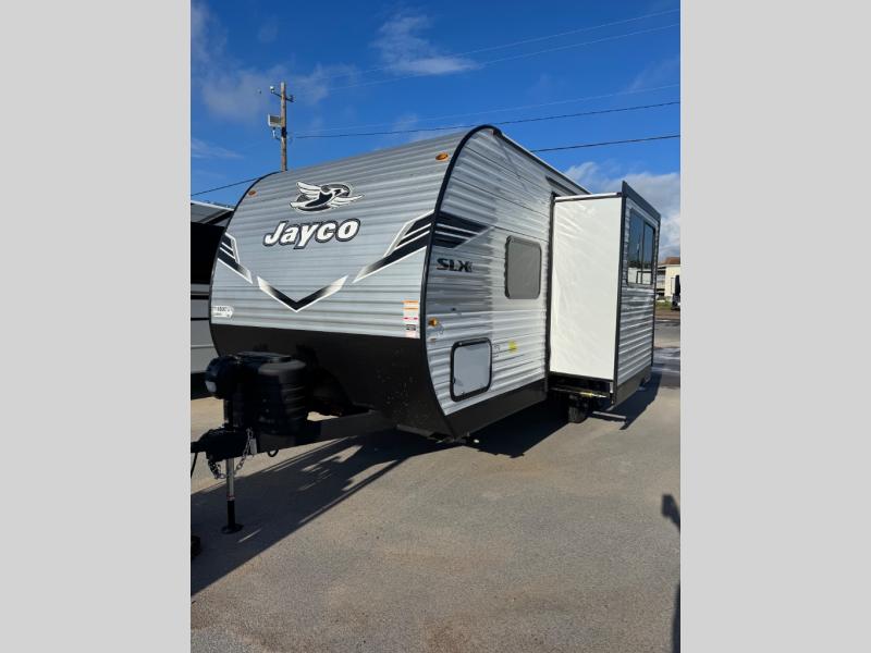 The Jayco Jay Flight SLX travel trailer is quite easy to own because it is lightweight for an easier towing experience. Built on a fully integrated A-frame with galvanized-steel, impact-resistant wheel wells, the Jay Flight SLX has quality at its very foundation. That quality continues on to the electric self-adjusting brakes, easy-lube hubs, Magnum Truss roof system, and LP quick connect. Some of what the mandatory Customer Value Package includes is backup camera prep, Keyed-Alike entry and baggage doors, and an on-demand tankless water heater.