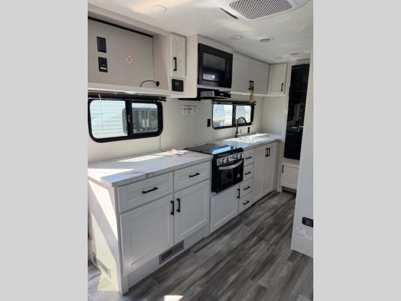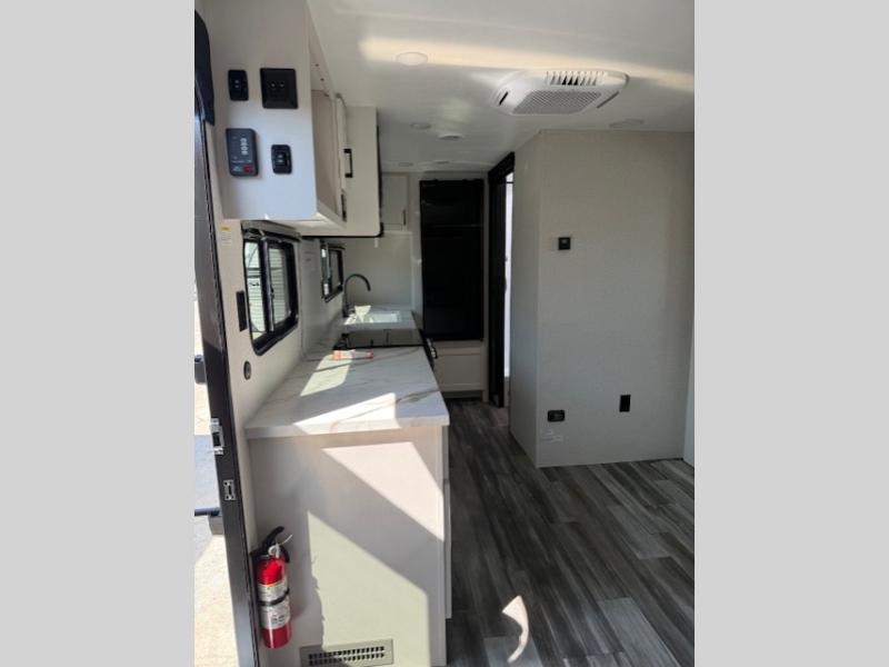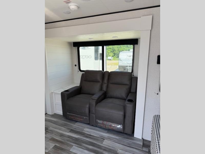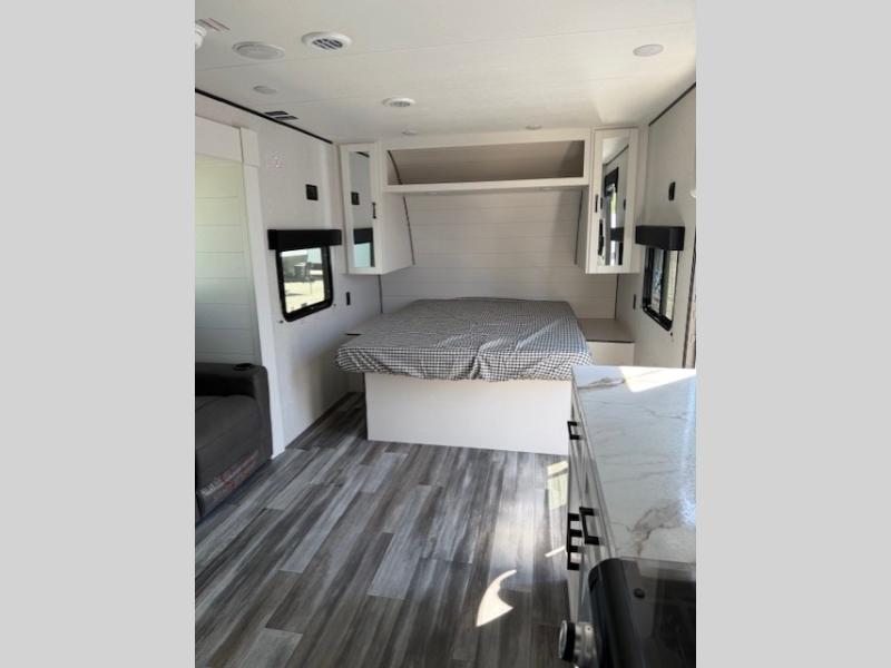 This couple's trailer will be perfect for weekend trips to the lake or extended stays at the campground. You can sleep on the front queen bed each night instead of on an air mattress, and the dual bedroom wardrobes will help keep your space organized. The theater seat is within a slide for more floor space, and the fully-equipped kitchen will allow you to make meals each day. You'll also appreciate the rear corner full bath to stay clean throughout each trip!