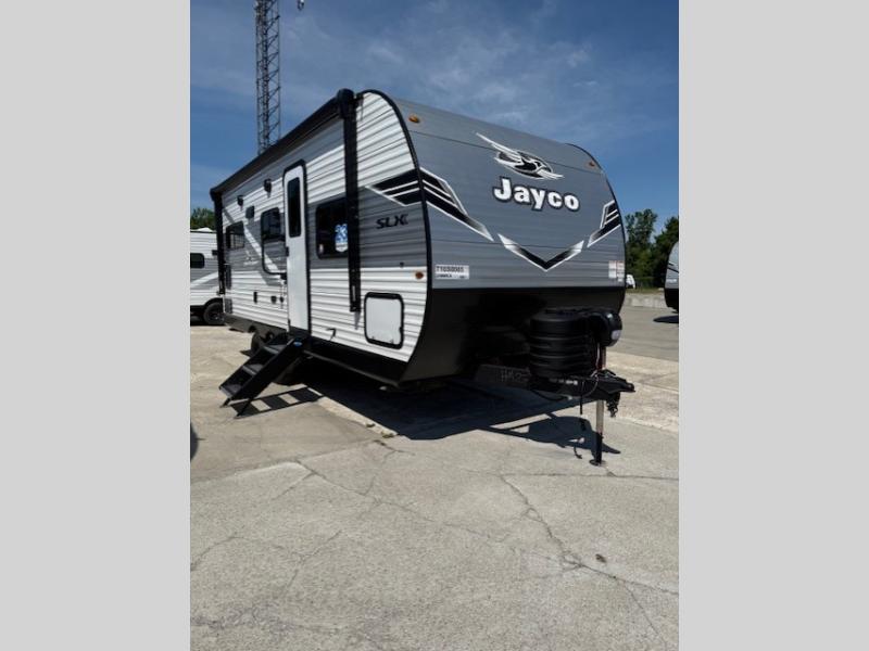 The Jayco Jay Flight SLX travel trailer is quite easy to own because it is lightweight for an easier towing experience. Built on a fully integrated A-frame with galvanized-steel, impact-resistant wheel wells, the Jay Flight SLX has quality at its very foundation. That quality continues on to the electric self-adjusting brakes, easy-lube hubs, Magnum Truss roof system, and LP quick connect. Some of what the mandatory Customer Value Package includes is backup camera prep, Keyed-Alike entry and baggage doors, and an on-demand tankless water heater.