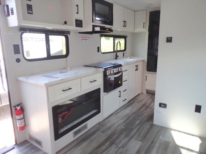 This couple's trailer will be perfect for weekend trips to the lake or extended stays at the campground. You can sleep on the front queen bed each night instead of on an air mattress, and the dual bedroom wardrobes will help keep your space organized. The theater seat is within a slide for more floor space, and the fully-equipped kitchen will allow you to make meals each day. You'll also appreciate the rear corner full bath to stay clean throughout each trip!
