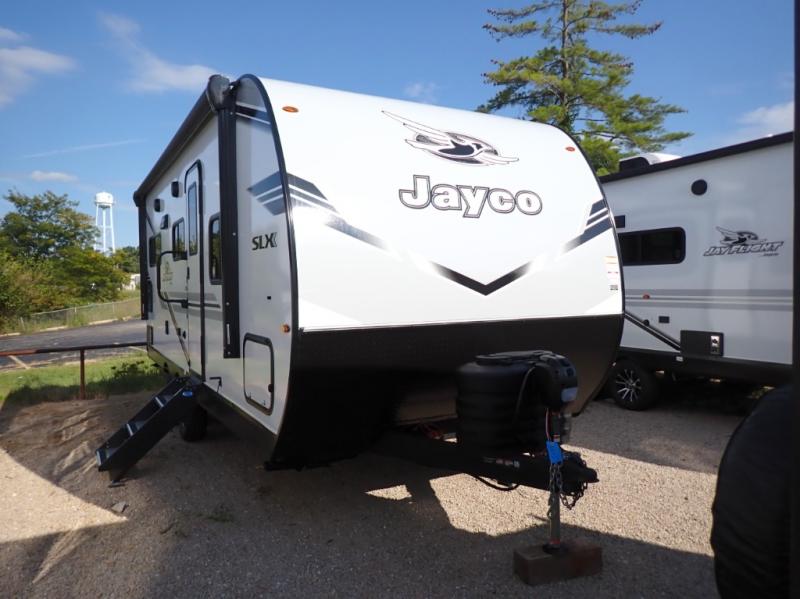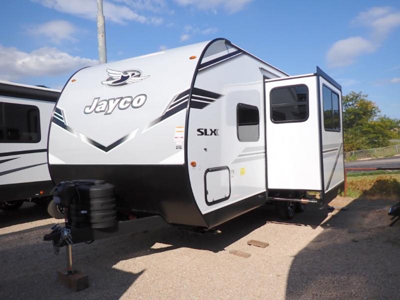 The Jayco Jay Flight SLX travel trailer is quite easy to own because it is lightweight for an easier towing experience. Built on a fully integrated A-frame with galvanized-steel, impact-resistant wheel wells, the Jay Flight SLX has quality at its very foundation. That quality continues on to the electric self-adjusting brakes, easy-lube hubs, Magnum Truss roof system, and LP quick connect. Some of what the mandatory Customer Value Package includes is backup camera prep, Keyed-Alike entry and baggage doors, and an on-demand tankless water heater.