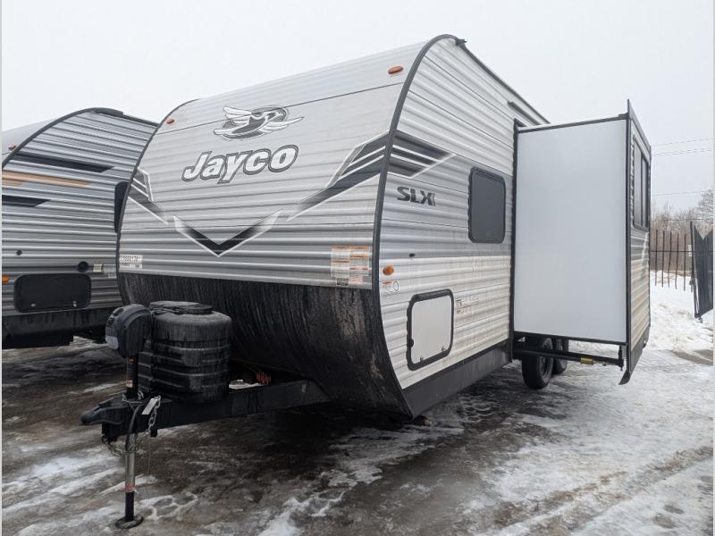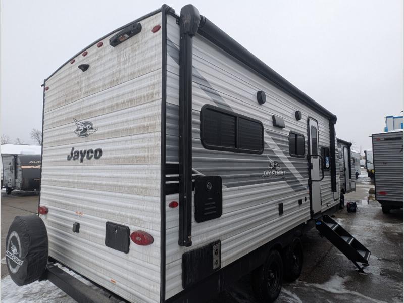 The Jayco Jay Flight SLX travel trailer is quite easy to own because it is lightweight for an easier towing experience. Built on a fully integrated A-frame with galvanized-steel, impact-resistant wheel wells, the Jay Flight SLX has quality at its very foundation. That quality continues on to the electric self-adjusting brakes, easy-lube hubs, Magnum Truss roof system, and LP quick connect. Some of what the mandatory Customer Value Package includes is backup camera prep, Keyed-Alike entry and baggage doors, and an on-demand tankless water heater.