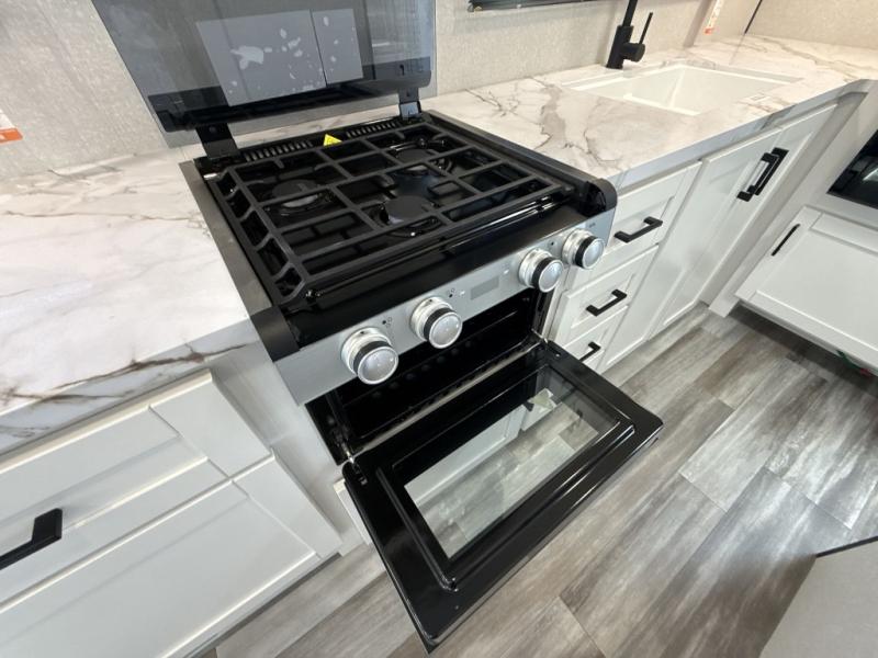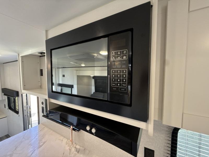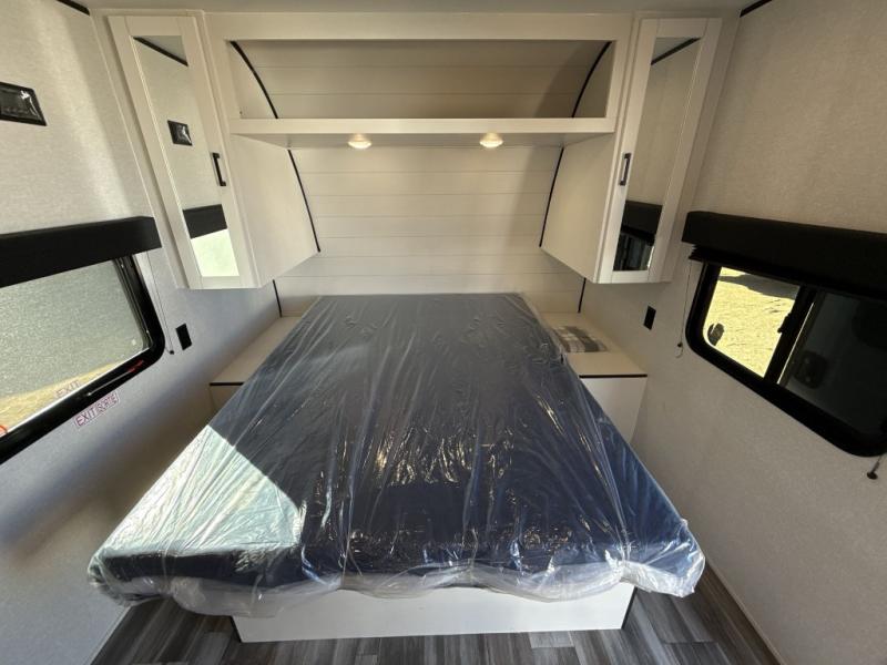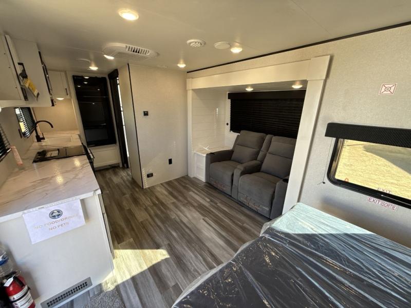 This couple's trailer will be perfect for weekend trips to the lake or extended stays at the campground. You can sleep on the front queen bed each night instead of on an air mattress, and the dual bedroom wardrobes will help keep your space organized. The theater seat with tables is within a slide for more floor space, and the fully-equipped kitchen will allow you to make meals each day. You'll also appreciate the rear corner full bath to stay clean throughout each trip!
