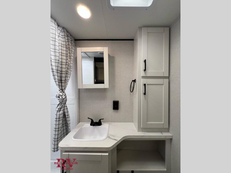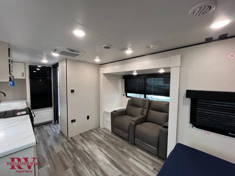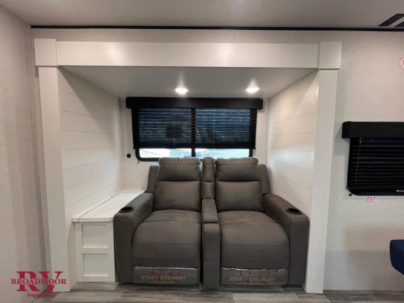 This couple's trailer will be perfect for weekend trips to the lake or extended stays at the campground. You can sleep on the front queen bed each night instead of on an air mattress, and the dual bedroom wardrobes will help keep your space organized. The theater seat with tables is within a slide for more floor space, and the fully-equipped kitchen will allow you to make meals each day. You'll also appreciate the rear corner full bath to stay clean throughout each trip!