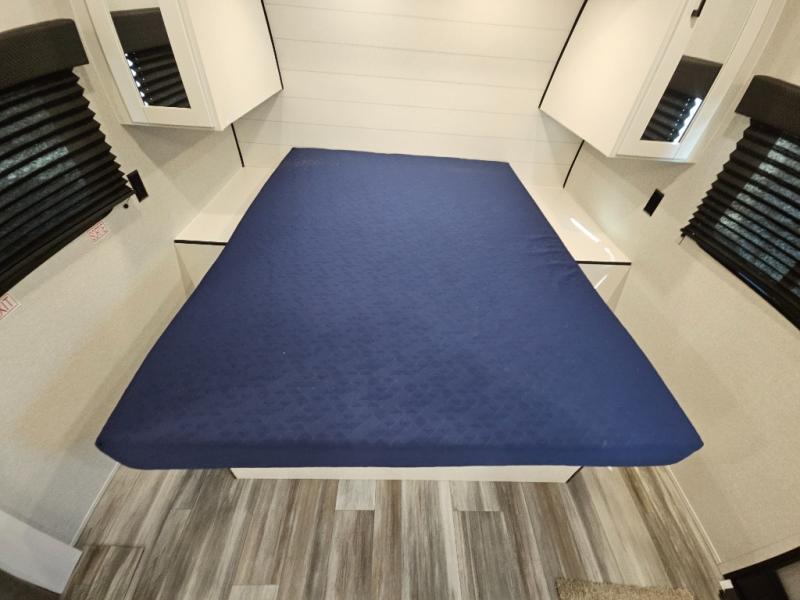This couple's trailer will be perfect for weekend trips to the lake or extended stays at the campground. You can sleep on the front queen bed each night instead of on an air mattress, and the dual bedroom wardrobes will help keep your space organized. The theater seat is within a slide for more floor space, and the fully-equipped kitchen will allow you to make meals each day. You'll also appreciate the rear corner full bath to stay clean throughout each trip!