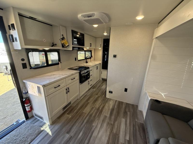 The Jayco Jay Flight SLX travel trailer is quite easy to own because it is lightweight for an easier towing experience. Built on a fully integrated A-frame with galvanized-steel, impact-resistant wheel wells, the Jay Flight SLX has quality at its very foundation. That quality continues on to the electric self-adjusting brakes, easy-lube hubs, Magnum Truss roof system, and LP quick connect. Some of what the mandatory Customer Value Package includes is backup camera prep, Keyed-Alike entry and baggage doors, and an on-demand tankless water heater.