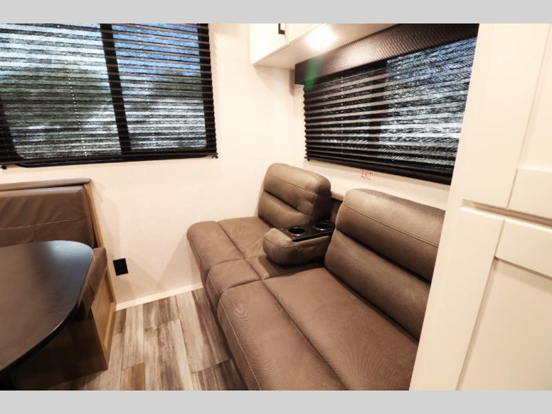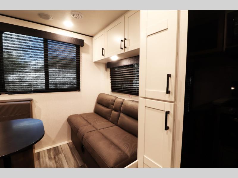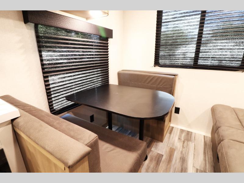 Queen bed & booth dinette convert to extra sleeping—excellent for overnight guests.