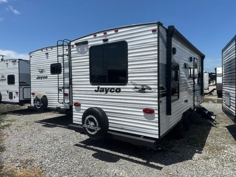 The Jayco Jay Flight SLX travel trailer is quite easy to own because it is lightweight for an easier towing experience. Built on a fully integrated A-frame with galvanized-steel, impact-resistant wheel wells, the Jay Flight SLX has quality at its very foundation. That quality continues on to the electric self-adjusting brakes, easy-lube hubs, Magnum Truss roof system, and LP quick connect. Some of what the mandatory Customer Value Package includes is backup camera prep, Keyed-Alike entry and baggage doors, marine grade exterior speakers, and an on-demand tankless water heater.