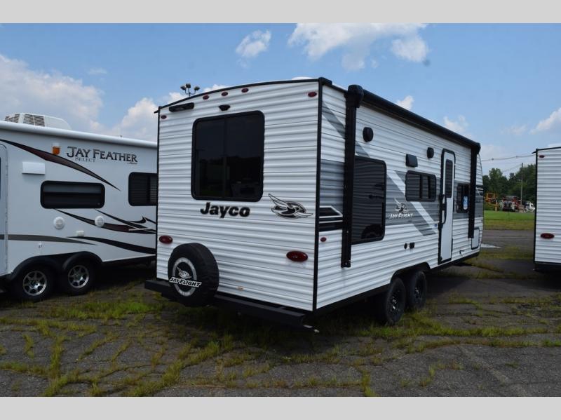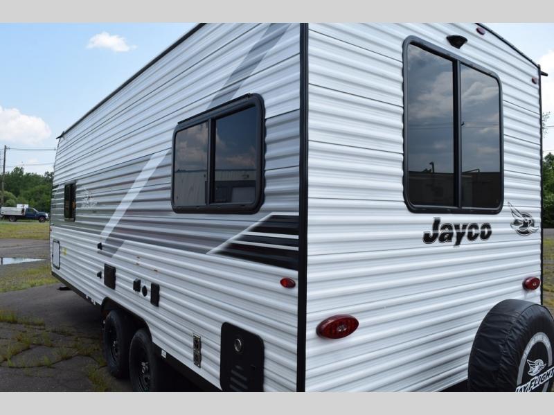 The Jayco Jay Flight SLX travel trailer is quite easy to own because it is lightweight for an easier towing experience. Built on a fully integrated A-frame with galvanized-steel, impact-resistant wheel wells, the Jay Flight SLX has quality at its very foundation. That quality continues on to the electric self-adjusting brakes, easy-lube hubs, Magnum Truss roof system, and LP quick connect. Some of what the mandatory Customer Value Package includes is backup camera prep, Keyed-Alike entry and baggage doors, marine grade exterior speakers, and an on-demand tankless water heater.