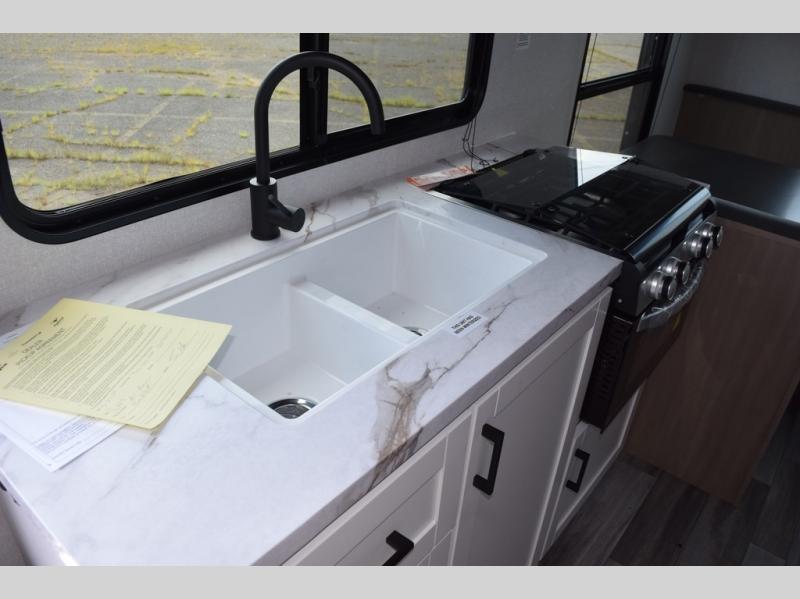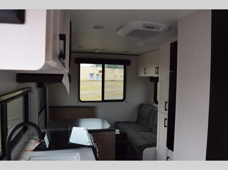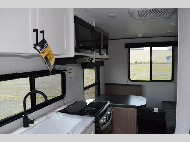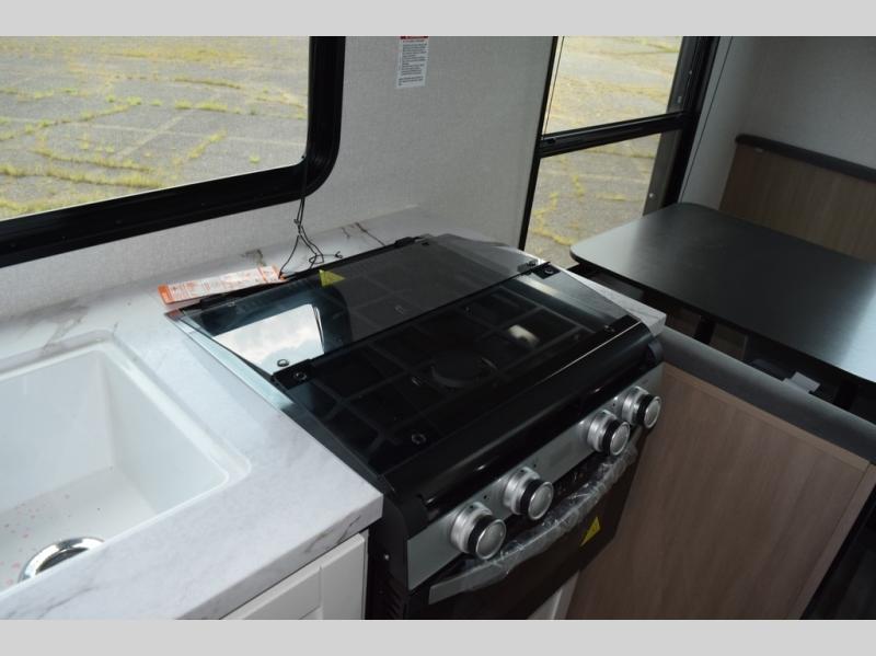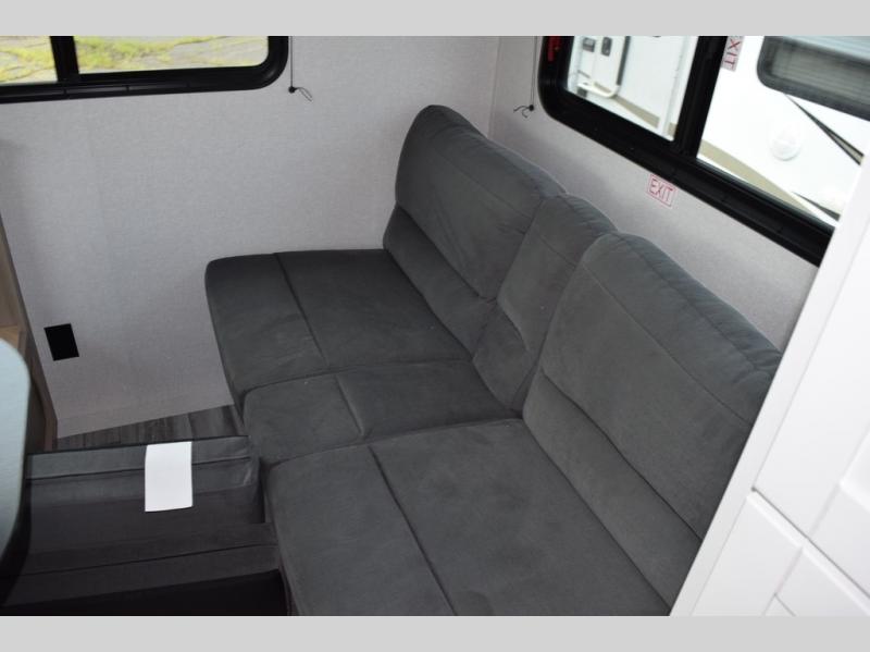 Camping in the woods is just what the doctor ordered and this trailer will provide all the interior comforts you need! There is a three burner cooktop and a microwave oven to prepare meals each day, plus an 8 cu. ft. 12V refrigerator for cold items. After your meal is made, you can dine at the booth dinette or relax on the jack-knife sofa, and these areas can become sleeping space for two to three guests at night. The full bath with a tub/shower means you won't have to use the camp's facilities and the 16' power awning will provide protection from the sun as you visit with other campers!