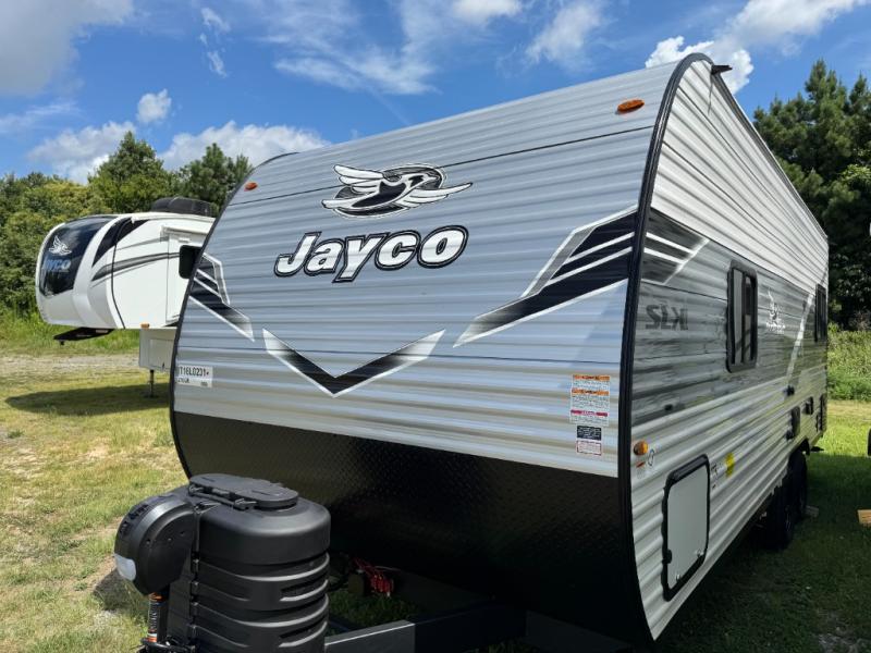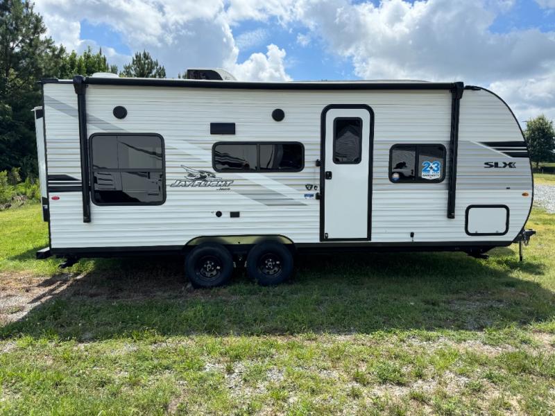 The Jayco Jay Flight SLX travel trailer is quite easy to own because it is lightweight for an easier towing experience. Built on a fully integrated A-frame with galvanized-steel, impact-resistant wheel wells, the Jay Flight SLX has quality at its very foundation. That quality continues on to the electric self-adjusting brakes, easy-lube hubs, Magnum Truss roof system, and LP quick connect. Some of what the mandatory Customer Value Package includes is backup camera prep, Keyed-Alike entry and baggage doors, and an on-demand tankless water heater.