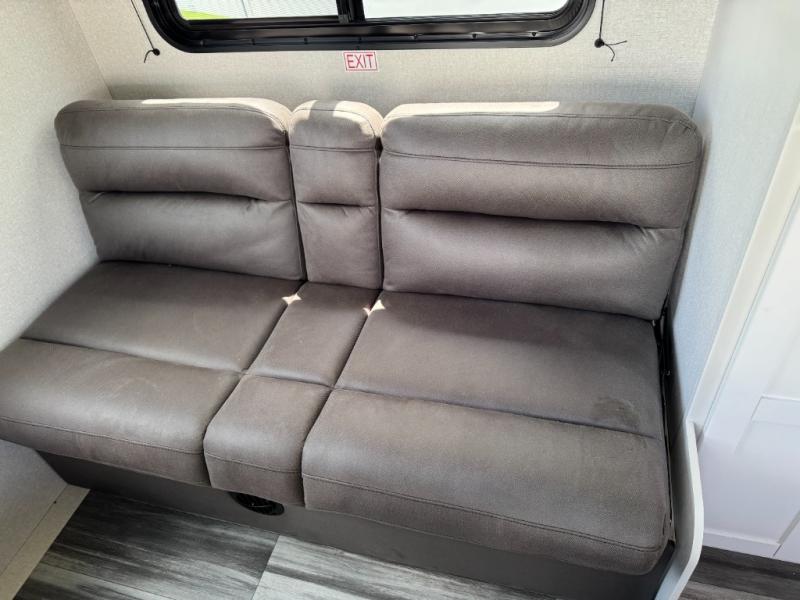Camping in the woods is just what the doctor ordered and this trailer will provide all the interior comforts you need! There is a three burner cooktop and a microwave oven to prepare meals each day, plus an 8 cu. ft. 12V refrigerator for cold items. After your meal is made, you can dine at the booth dinette or relax on the jack-knife sofa, and these areas can become sleeping space for two to three guests at night. The full bath with a shower means you won't have to use the camp's facilities and the 16' power awning will provide protection from the sun as you visit with other campers!