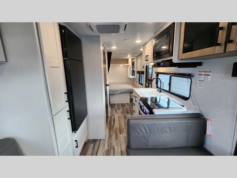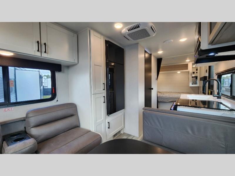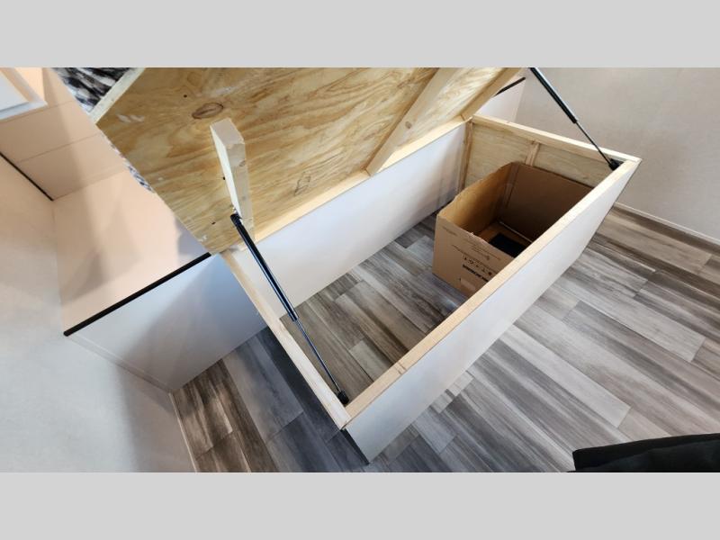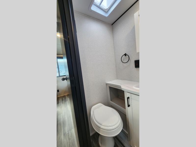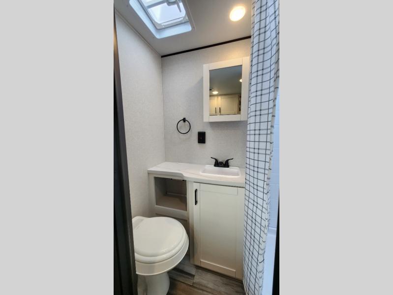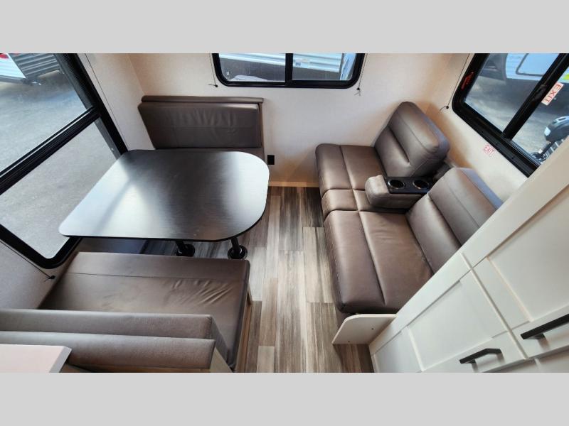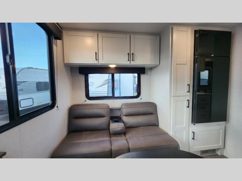 Camping in the woods is just what the doctor ordered and this trailer will provide all the interior comforts you need! There is a three burner cooktop and a microwave oven to prepare meals each day, plus an 8 cu. ft. 12V refrigerator for cold items. After your meal is made, you can dine at the booth dinette or relax on the jack-knife sofa, and these areas can become sleeping space for two to three guests at night. The full bath with a shower means you won't have to use the camp's facilities and the 16' power awning will provide protection from the sun as you visit with other campers!