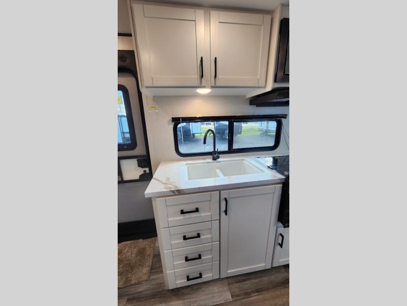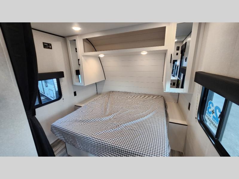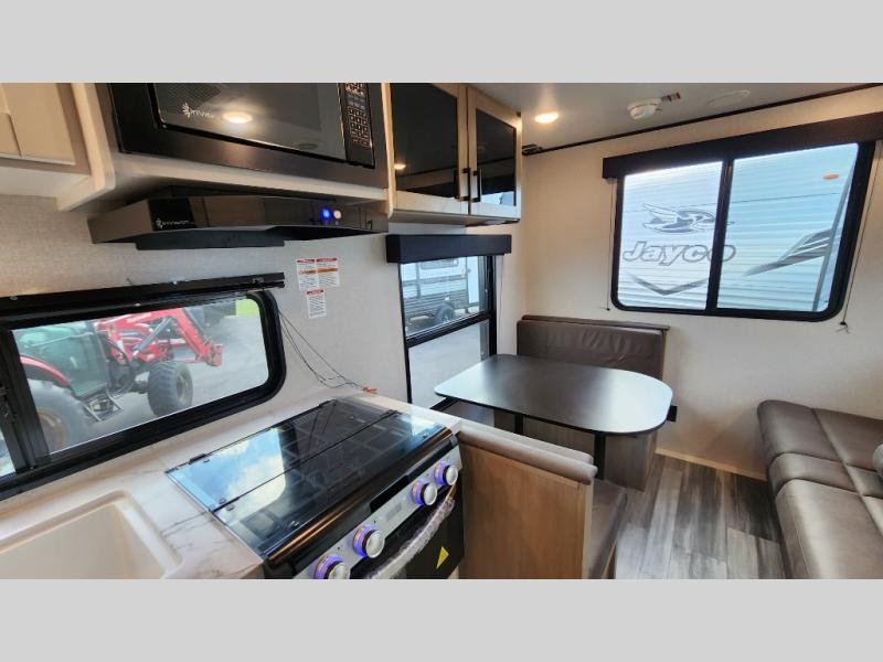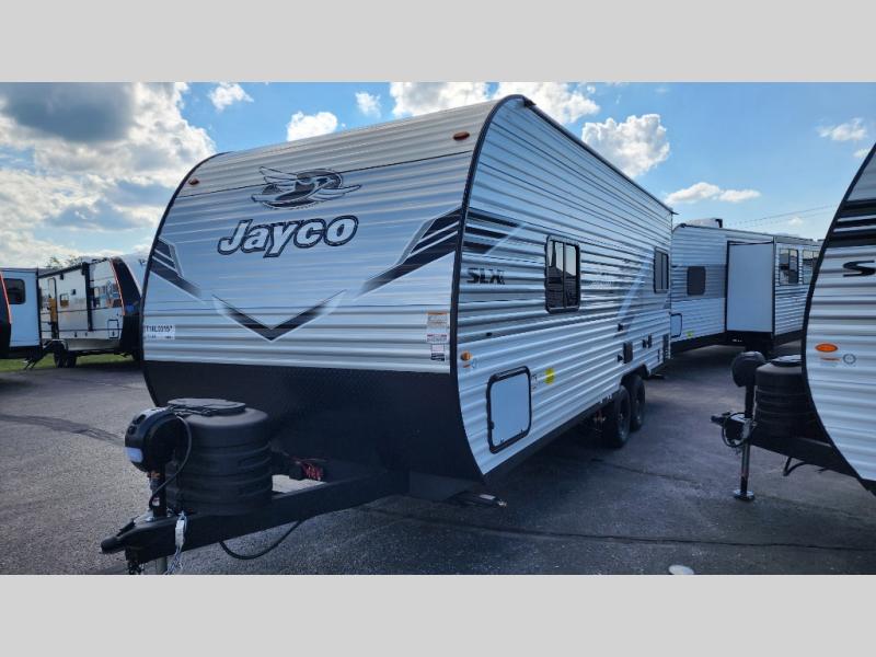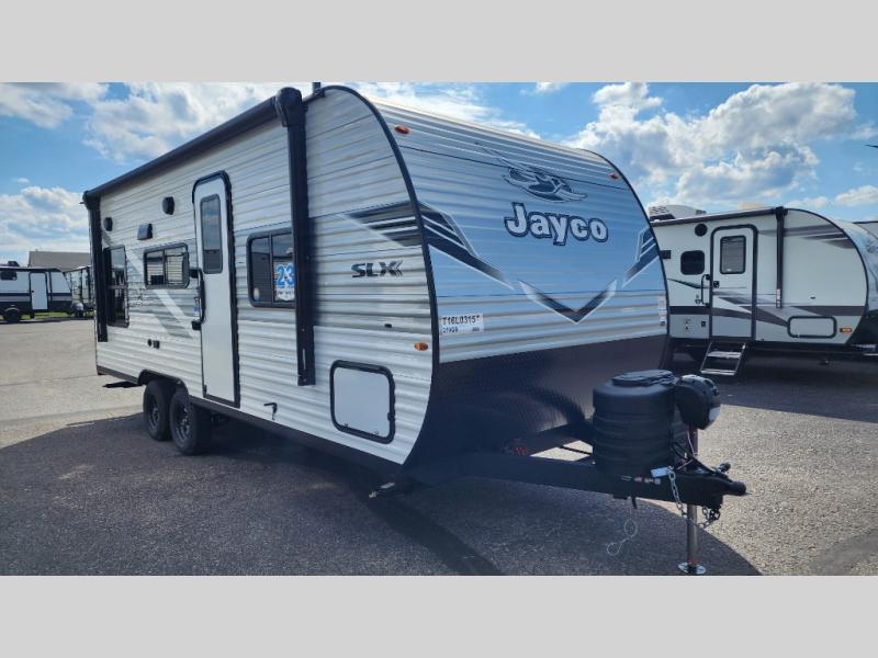 The Jayco Jay Flight SLX travel trailer is quite easy to own because it is lightweight for an easier towing experience. Built on a fully integrated A-frame with galvanized-steel, impact-resistant wheel wells, the Jay Flight SLX has quality at its very foundation. That quality continues on to the electric self-adjusting brakes, easy-lube hubs, Magnum Truss roof system, and LP quick connect. Some of what the mandatory Customer Value Package includes is backup camera prep, Keyed-Alike entry and baggage doors, and an on-demand tankless water heater.