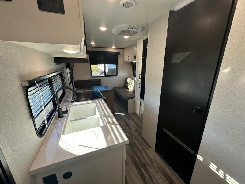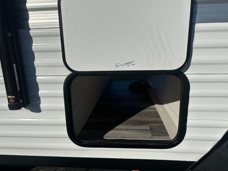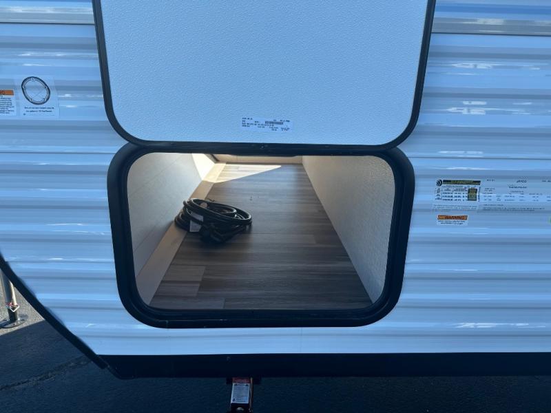 The Jayco Jay Flight SLX travel trailer is quite easy to own because it is lightweight for an easier towing experience. Built on a fully integrated A-frame with galvanized-steel, impact-resistant wheel wells, the Jay Flight SLX has quality at its very foundation. That quality continues on to the electric self-adjusting brakes, easy-lube hubs, Magnum Truss roof system, and LP quick connect. Some of what the mandatory Customer Value Package includes is backup camera prep, Keyed-Alike entry and baggage doors, and an on-demand tankless water heater.