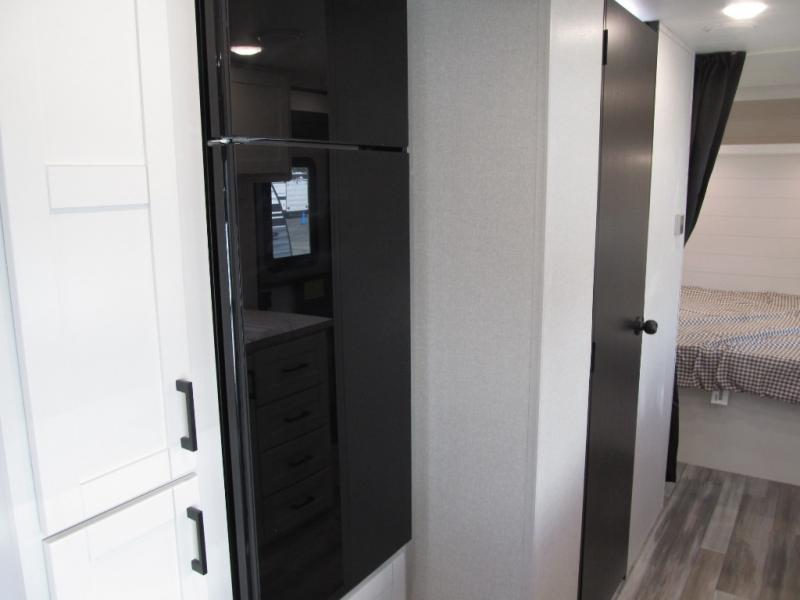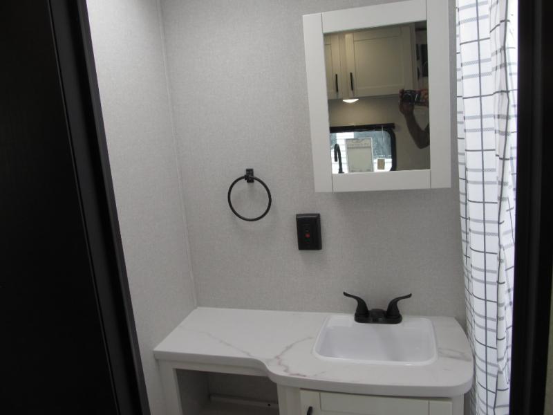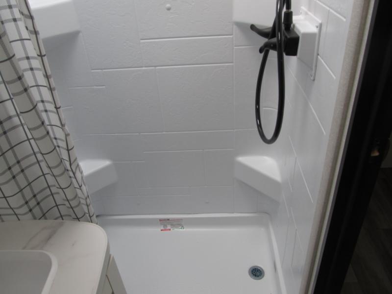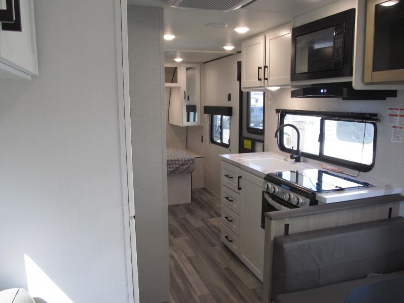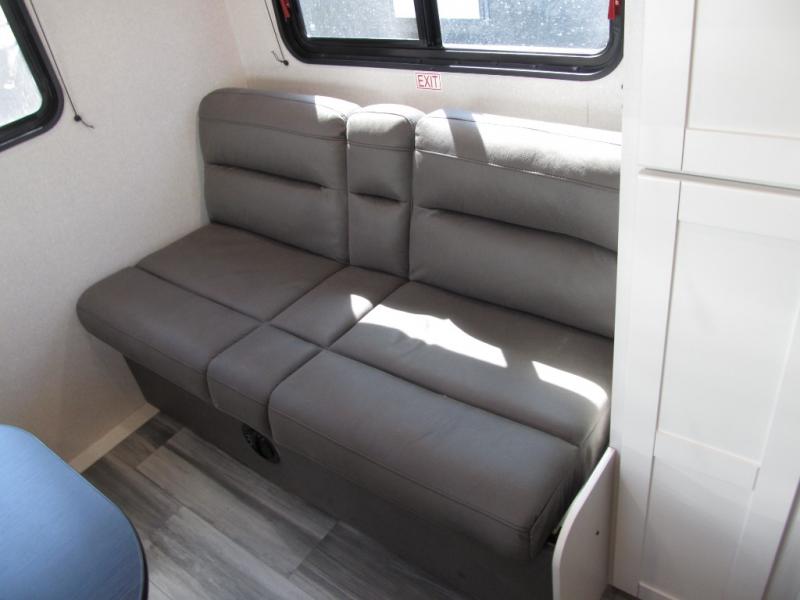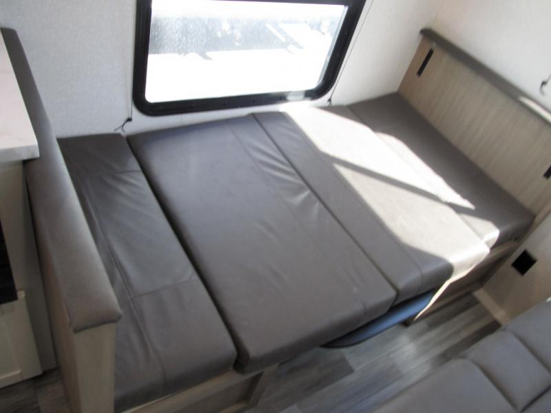 Camping in the woods is just what the doctor ordered and this trailer will provide all the interior comforts you need! There is a three burner cooktop and a microwave oven to prepare meals each day, plus an 8 cu. ft. 12V refrigerator for cold items. After your meal is made, you can dine at the booth dinette or relax on the jack-knife sofa, and these areas can become sleeping space for two to three guests at night. The full bath with a shower means you won't have to use the camp's facilities and the 16' power awning will provide protection from the sun as you visit with other campers!