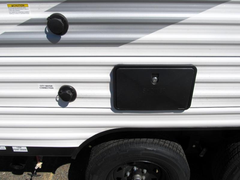 The Jayco Jay Flight SLX travel trailer is quite easy to own because it is lightweight for an easier towing experience. Built on a fully integrated A-frame with galvanized-steel, impact-resistant wheel wells, the Jay Flight SLX has quality at its very foundation. That quality continues on to the electric self-adjusting brakes, easy-lube hubs, Magnum Truss roof system, and LP quick connect. Some of what the mandatory Customer Value Package includes is backup camera prep, Keyed-Alike entry and baggage doors, and an on-demand tankless water heater.