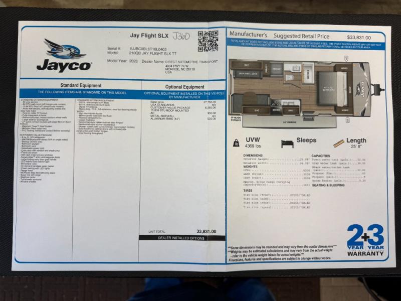 New 2026 Jayco Jay Flight SLX 210QB Travel Trailer