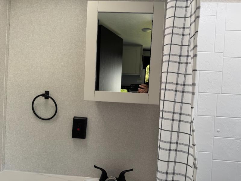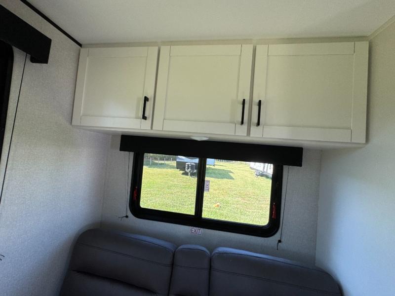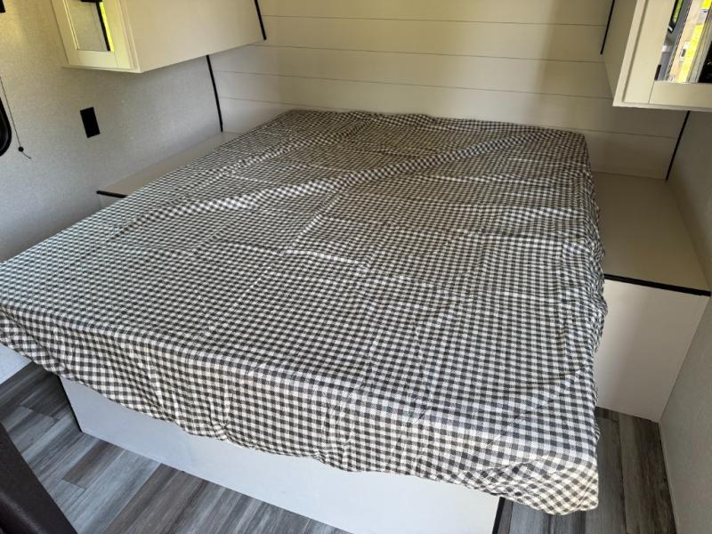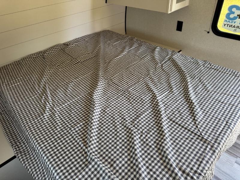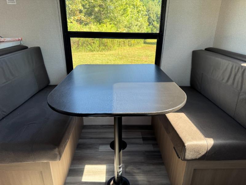 Camping in the woods is just what the doctor ordered and this trailer will provide all the interior comforts you need! There is a three burner cooktop and a microwave oven to prepare meals each day, plus an 8 cu. ft. 12V refrigerator for cold items. After your meal is made, you can dine at the booth dinette or relax on the jack-knife sofa, and these areas can become sleeping space for two to three guests at night. The full bath with a shower means you won't have to use the camp's facilities and the 16' power awning will provide protection from the sun as you visit with other campers!