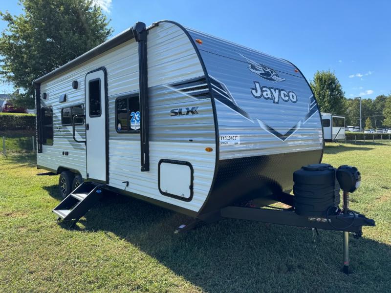 The Jayco Jay Flight SLX travel trailer is quite easy to own because it is lightweight for an easier towing experience. Built on a fully integrated A-frame with galvanized-steel, impact-resistant wheel wells, the Jay Flight SLX has quality at its very foundation. That quality continues on to the electric self-adjusting brakes, easy-lube hubs, Magnum Truss roof system, and LP quick connect. Some of what the mandatory Customer Value Package includes is backup camera prep, Keyed-Alike entry and baggage doors, and an on-demand tankless water heater.