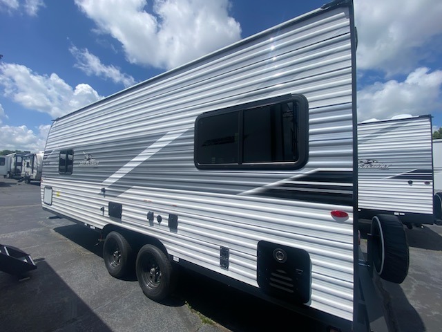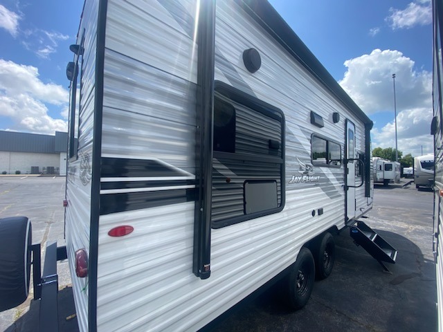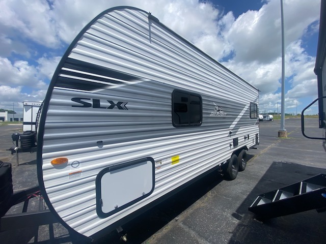 The Jayco Jay Flight SLX travel trailer is quite easy to own because it is lightweight for an easier towing experience. Built on a fully integrated A-frame with galvanized-steel, impact-resistant wheel wells, the Jay Flight SLX has quality at its very foundation. That quality continues on to the electric self-adjusting brakes, easy-lube hubs, Magnum Truss roof system, and LP quick connect. Some of what the mandatory Customer Value Package includes is backup camera prep, Keyed-Alike entry and baggage doors, and an on-demand tankless water heater.