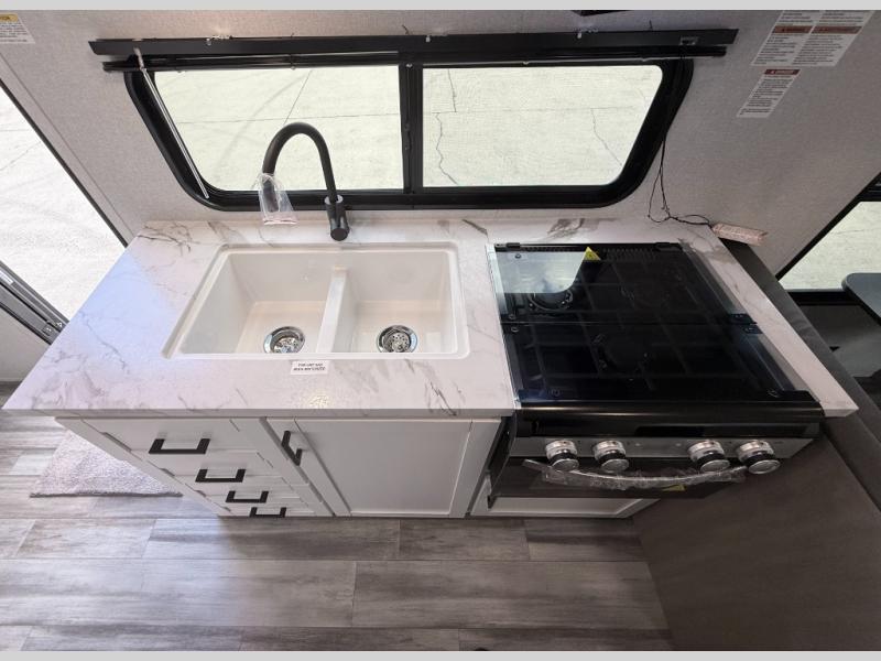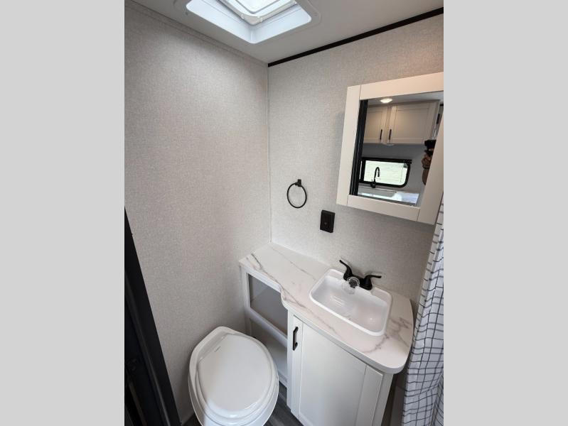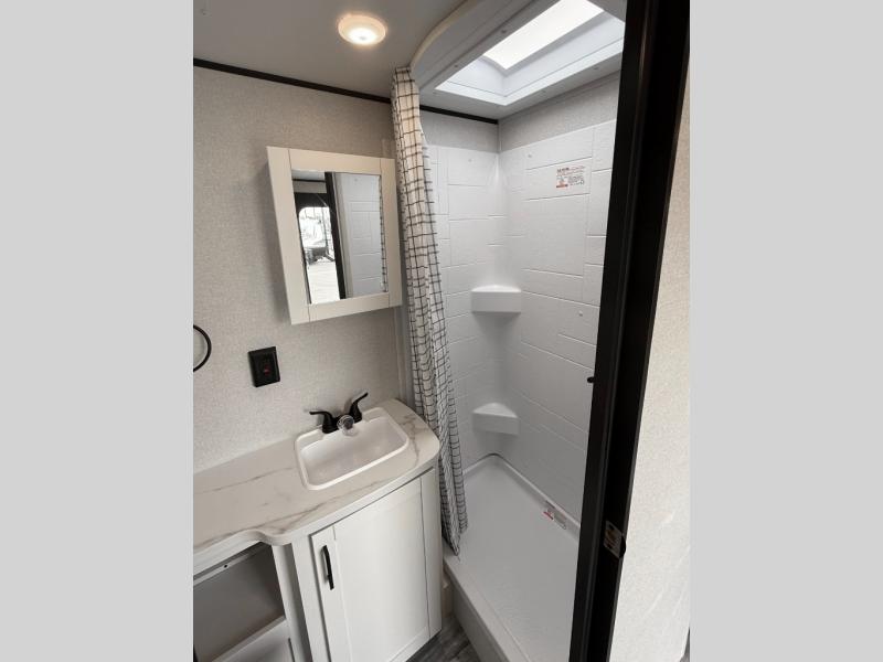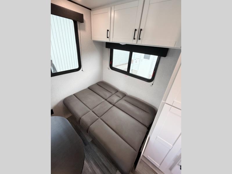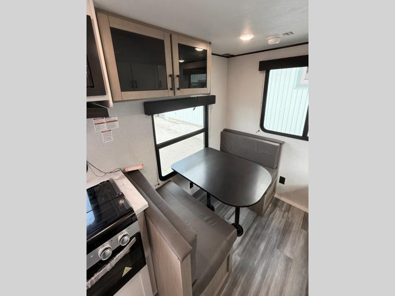 Camping in the woods is just what the doctor ordered and this trailer will provide all the interior comforts you need! There is a three burner cooktop and a microwave oven to prepare meals each day, plus an 7.7 cu. ft. 12V refrigerator for cold items. After your meal is made, you can dine at the booth dinette or relax on the jack-knife sofa, and these areas can become sleeping space for two to three guests at night. The full bath with a shower means you won't have to use the camp's facilities and the 16' power awning will provide protection from the sun as you visit with other campers!
