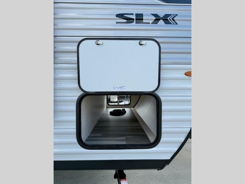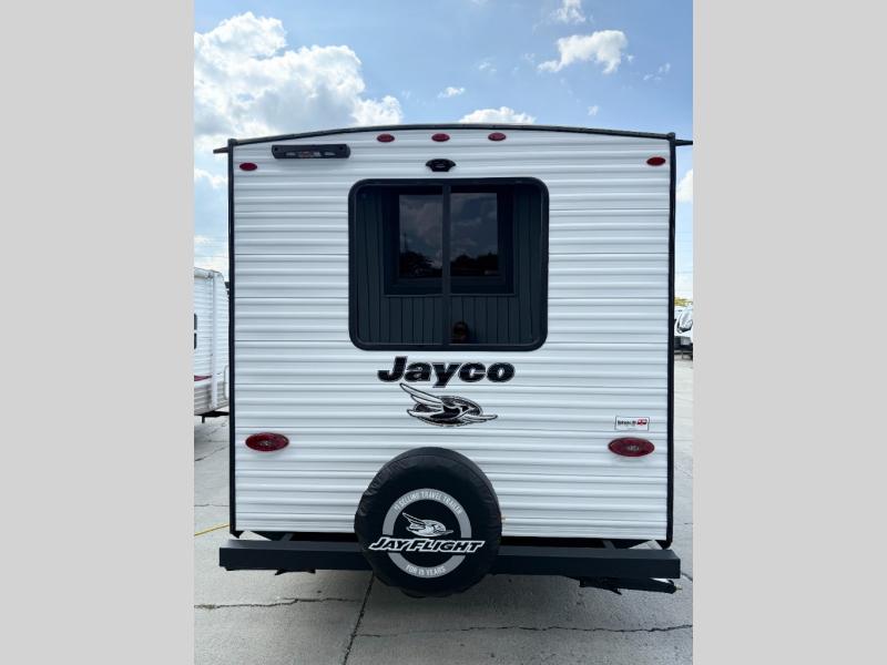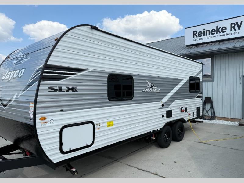 The Jayco Jay Flight SLX travel trailer is quite easy to own because it is lightweight for an easier towing experience. Built on a fully integrated A-frame with galvanized-steel, impact-resistant wheel wells, the Jay Flight SLX has quality at its very foundation. That quality continues on to the electric self-adjusting brakes, easy-lube hubs, Magnum Truss roof system, and LP quick connect. Some of what the mandatory Customer Value Package includes is backup camera prep, Keyed-Alike entry and baggage doors, and an on-demand tankless water heater.