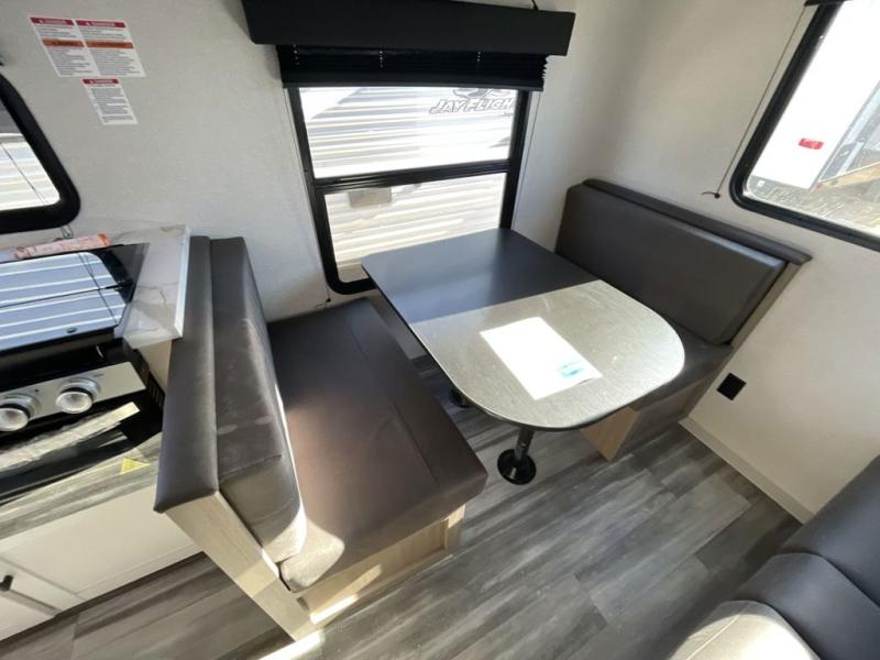 The Jayco Jay Flight SLX travel trailer is quite easy to own because it is lightweight for an easier towing experience. Built on a fully integrated A-frame with galvanized-steel, impact-resistant wheel wells, the Jay Flight SLX has quality at its very foundation. That quality continues on to the electric self-adjusting brakes, easy-lube hubs, Magnum Truss roof system, and LP quick connect. Some of what the mandatory Customer Value Package includes is backup camera prep, Keyed-Alike entry and baggage doors, and an on-demand tankless water heater.
