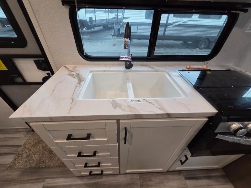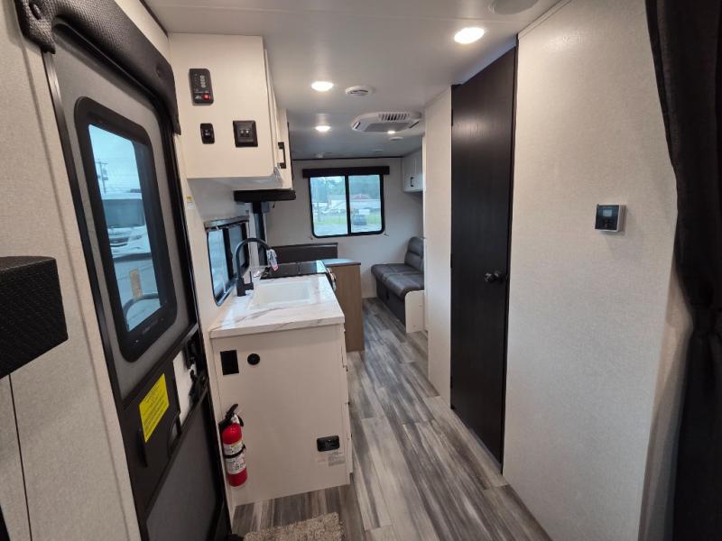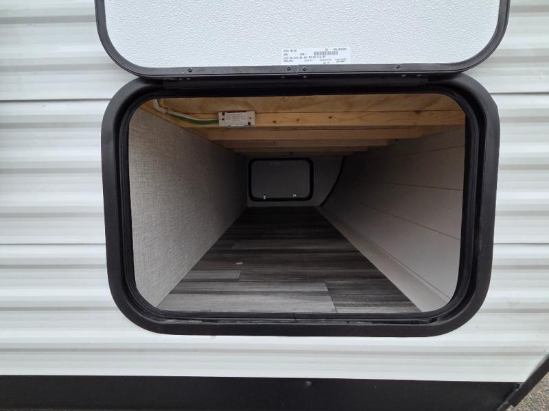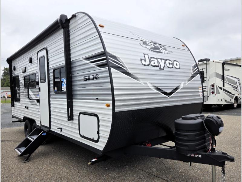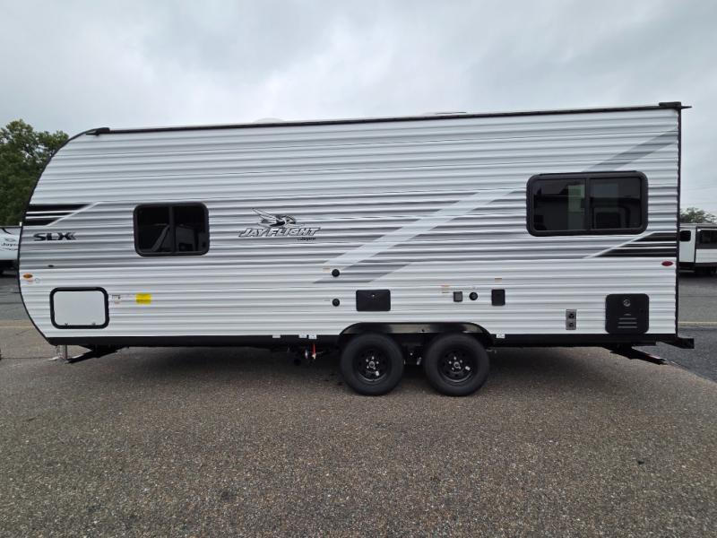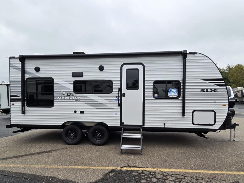 The Jayco Jay Flight SLX travel trailer is quite easy to own because it is lightweight for an easier towing experience. Built on a fully integrated A-frame with galvanized-steel, impact-resistant wheel wells, the Jay Flight SLX has quality at its very foundation. That quality continues on to the electric self-adjusting brakes, easy-lube hubs, Magnum Truss roof system, and LP quick connect. Some of what the mandatory Customer Value Package includes is backup camera prep, Keyed-Alike entry and baggage doors, and an on-demand tankless water heater.