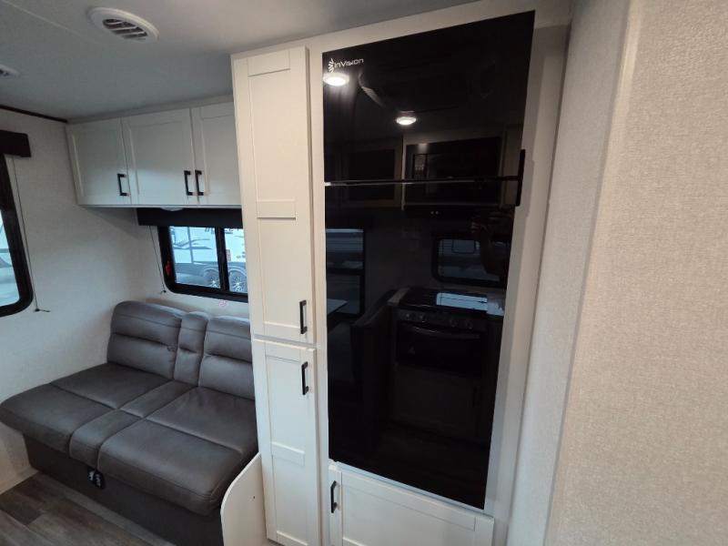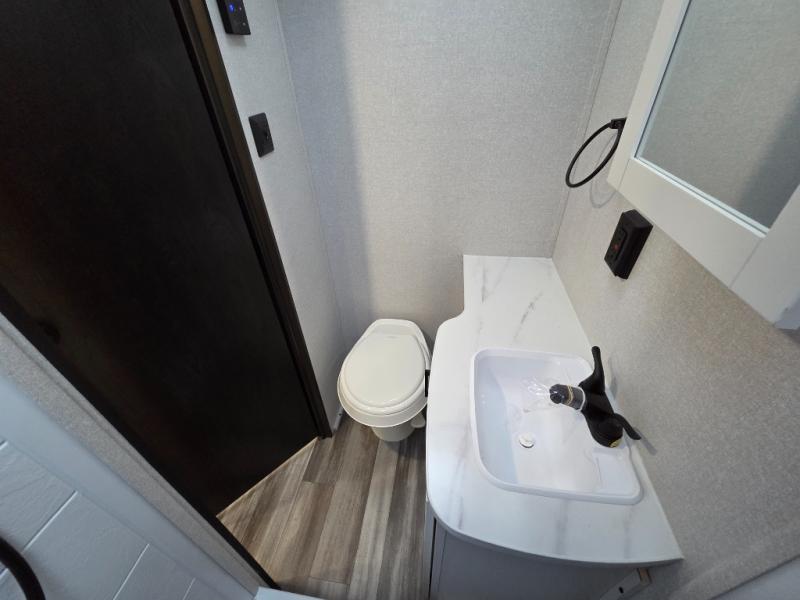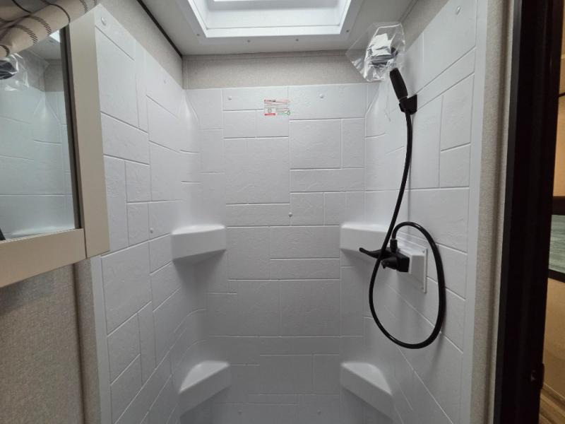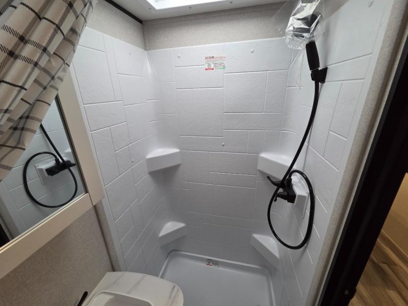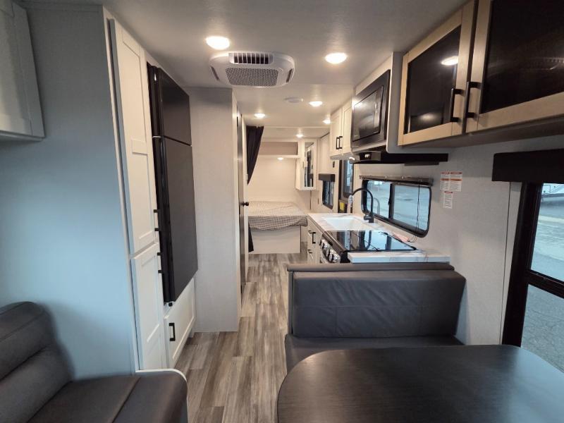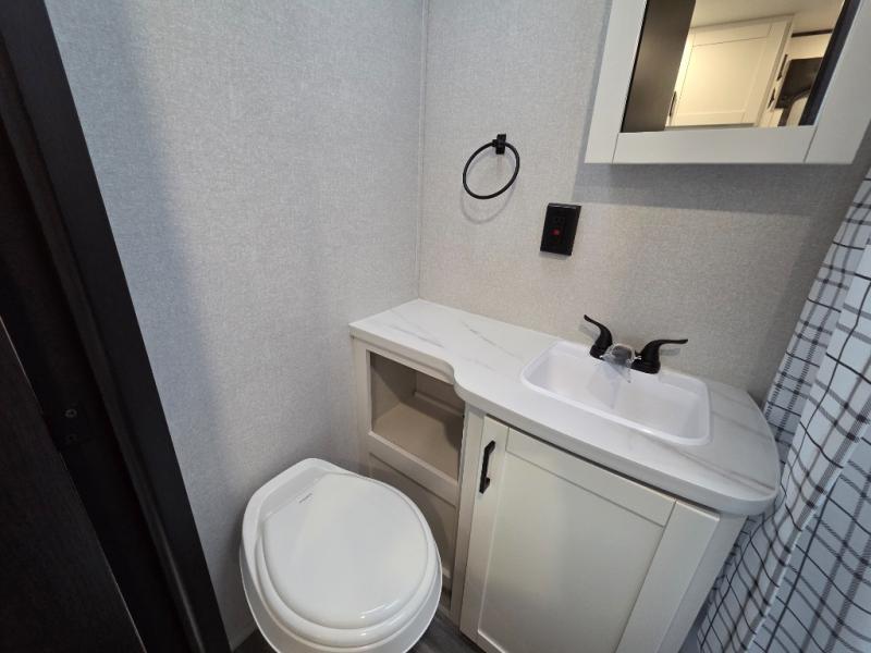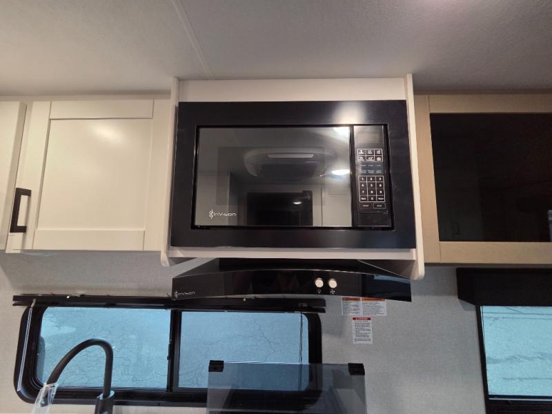 Camping in the woods is just what the doctor ordered and this trailer will provide all the interior comforts you need! There is a three burner cooktop and a microwave oven to prepare meals each day, plus an 8 cu. ft. 12V refrigerator for cold items. After your meal is made, you can dine at the booth dinette or relax on the jack-knife sofa, and these areas can become sleeping space for two to three guests at night. The full bath with a shower means you won't have to use the camp's facilities and the 16' power awning will provide protection from the sun as you visit with other campers!