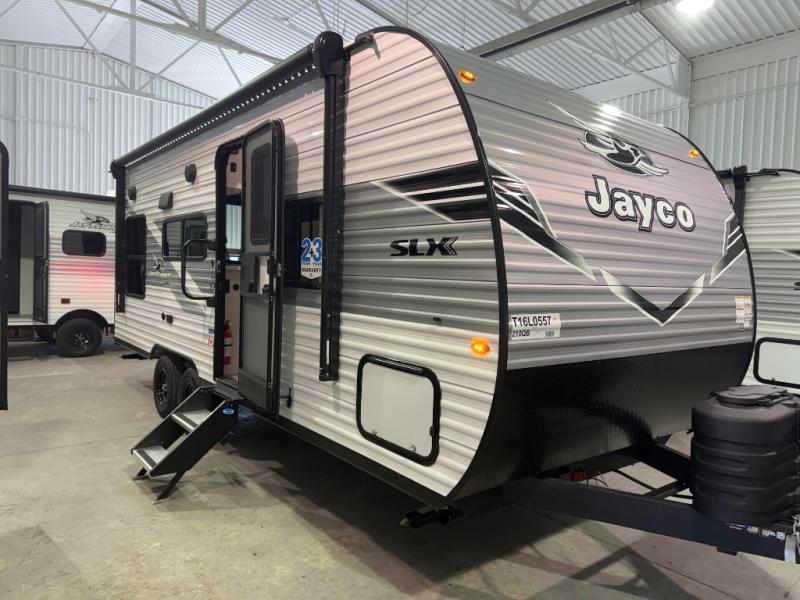The Jayco Jay Flight SLX travel trailer is quite easy to own because it is lightweight for an easier towing experience. Built on a fully integrated A-frame with galvanized-steel, impact-resistant wheel wells, the Jay Flight SLX has quality at its very foundation. That quality continues on to the electric self-adjusting brakes, easy-lube hubs, Magnum Truss roof system, and LP quick connect. Some of what the mandatory Customer Value Package includes is backup camera prep, Keyed-Alike entry and baggage doors, and an on-demand tankless water heater.